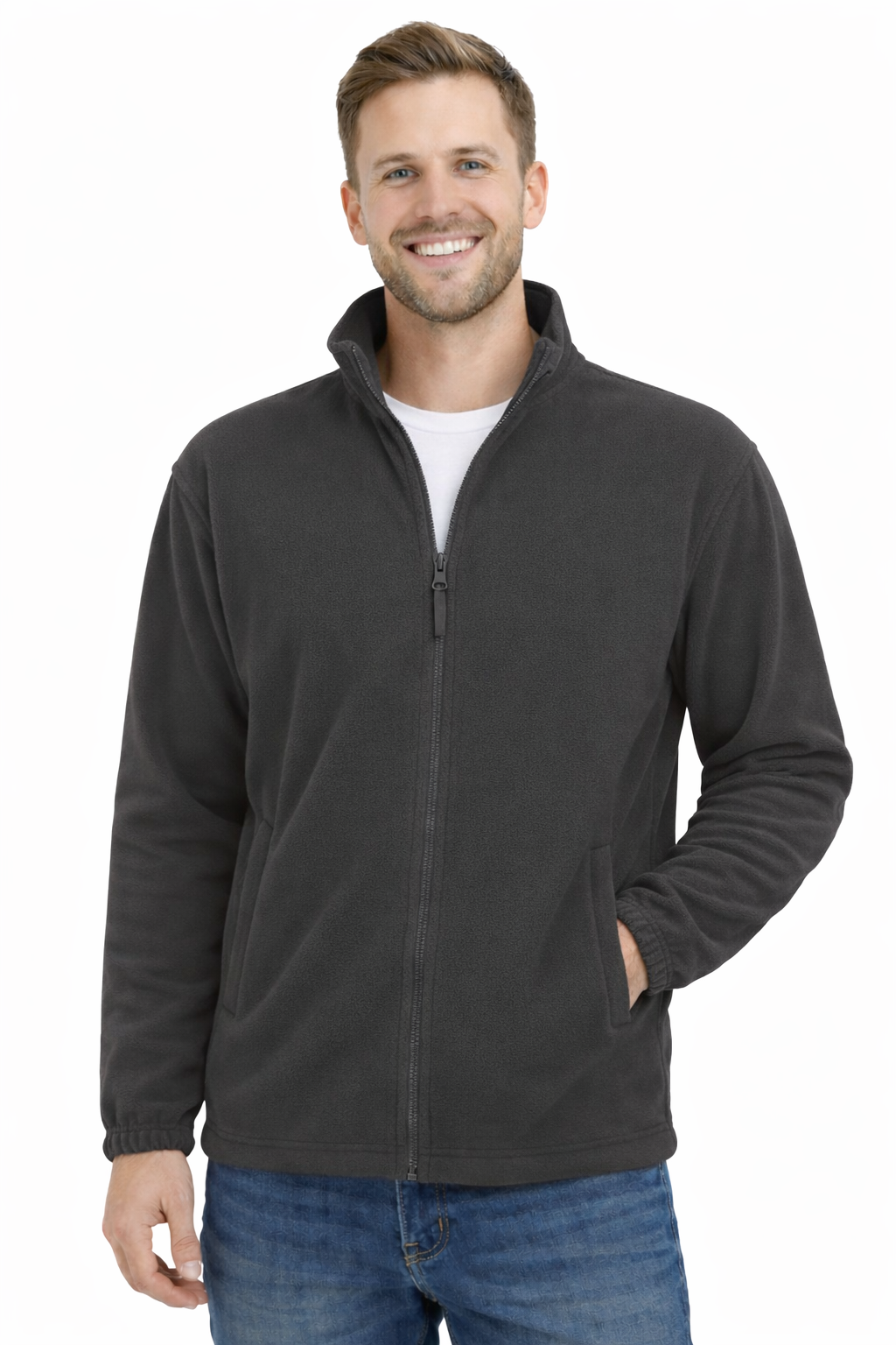 Grafiitinharmaa miesten lääketieteellinen fleece-pusero – vetoketjulla kiinnitettävä