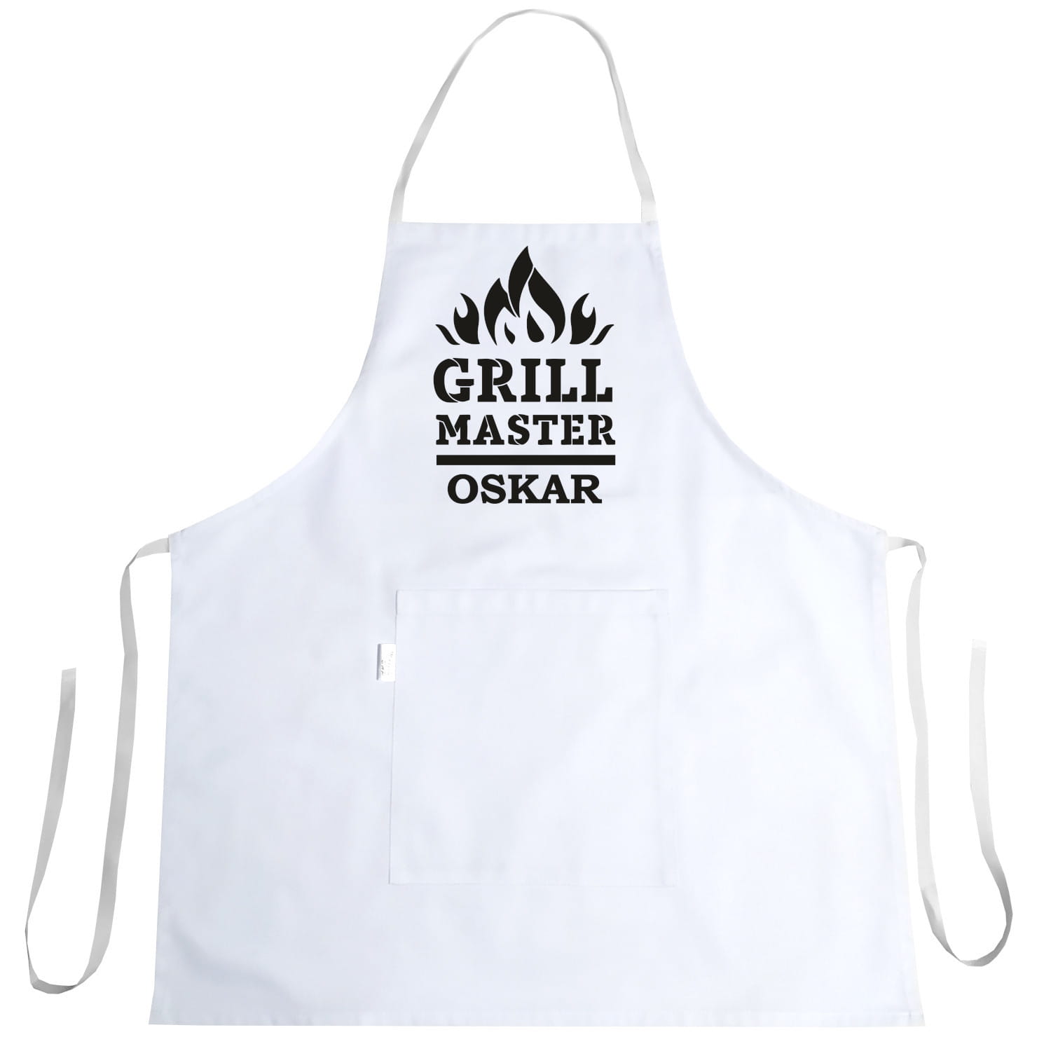 Grill Master -painatuksella varustettu keittiöessu + oma tekstisi