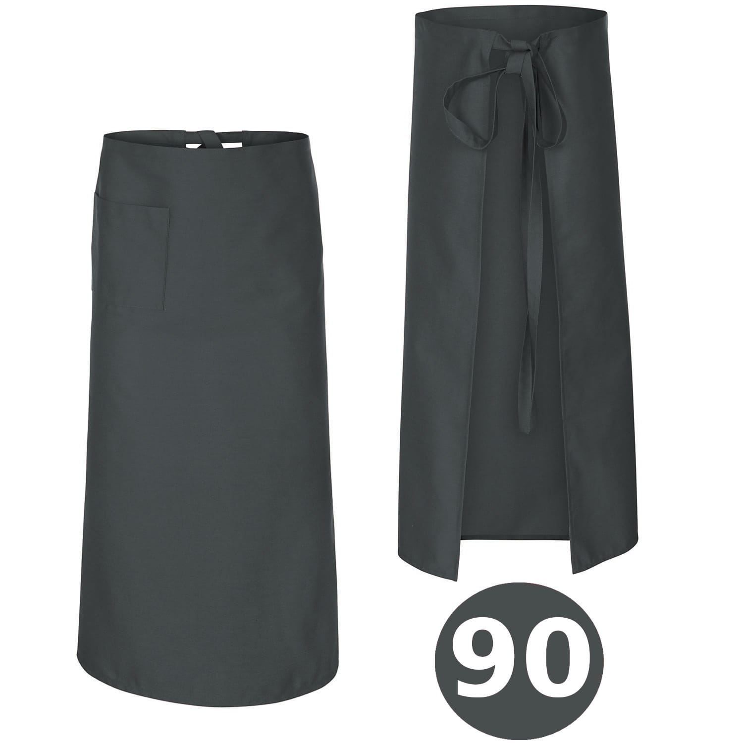 90 cm harmaa tarjoilijaesiliina on tyylikäs ja toimiva esiliina ravintola- ja hotellialalle. Se on täydellinen tarjoilijattarille, tarjoilijoille, baarimikoille, barista, picolloille ja kokkeille. Tämä on monikäyttöinen työvaate, joka yhdistää estetiikan ja kestävyyden.