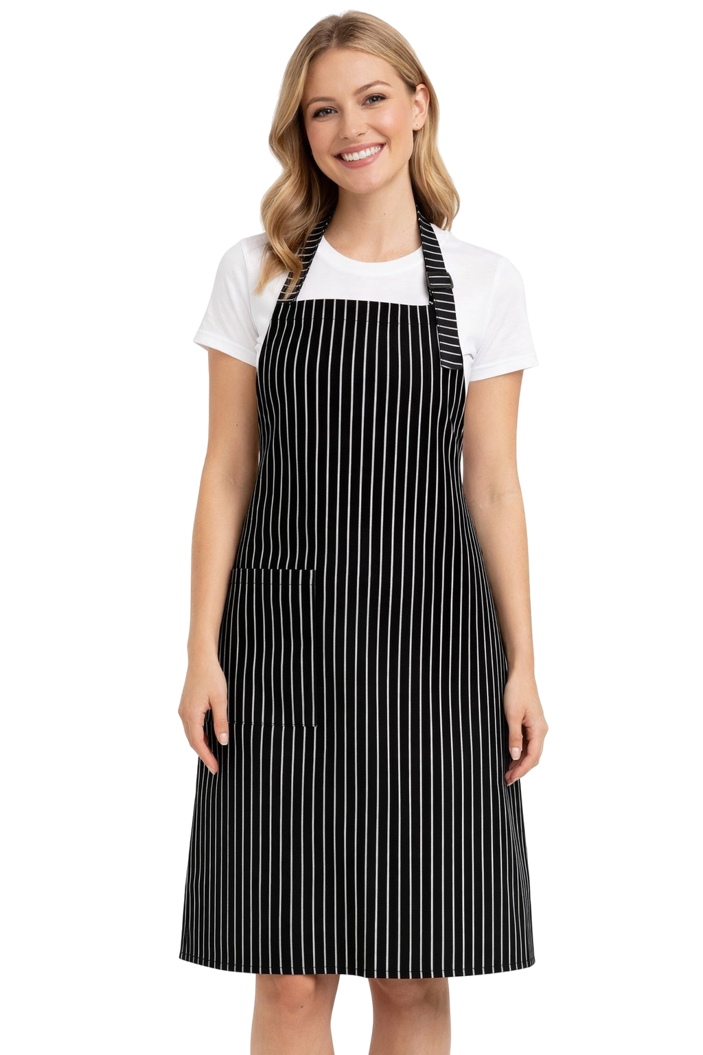 Mustavalkoisten raitojen gastronominen esiliina on tyylikäs ja käytännöllinen vaatekappale HoReCa-alan henkilökunnalle. Se on hyvä valinta tarjoilijoille, baarimikoille, baristoille, busboyille ja keittiöpäälliköille - kaikkialla siellä, missä ammattimainen ulkonäkö ja mukavuus ovat tärkeitä.