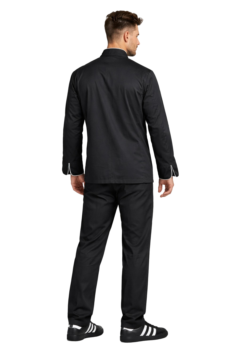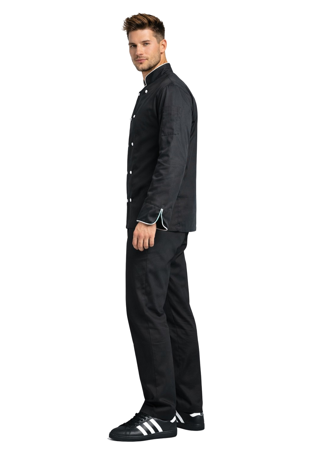 Keittiömestarin setti on suunniteltu siten, että se tarjoaa mukavuutta pitkäaikaisessa keittiötyössä, samalla kun se näyttää tyylikkäältä ja ammattimaiselta. Oikea leikkaus ja kestävät kankaat tekevät asusta päivittäiseen käyttöön sopivan.