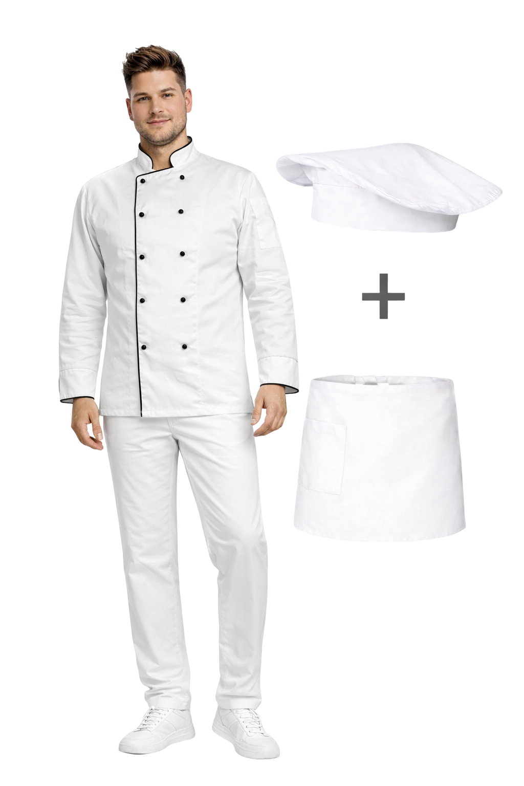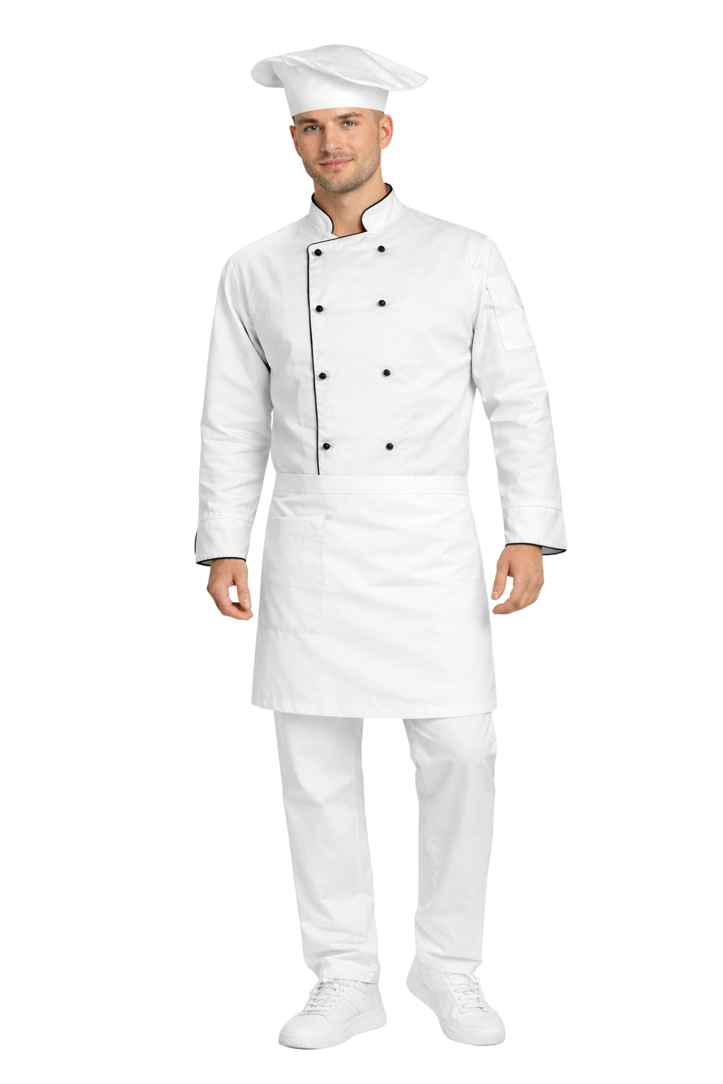 Täydellinen kokin / keittiöpäällikön univormu takaa tiimin yhtenäisen ulkonäön, korkean työmukavuuden sekä pitkäikäisyyden jopa intensiivisessä käytössä ja usein pesussa.