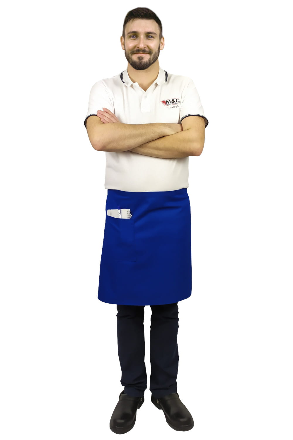 .Kokkiaproni, tarjoilija- ja baarimestariväri, sininen, pituus 50 cm