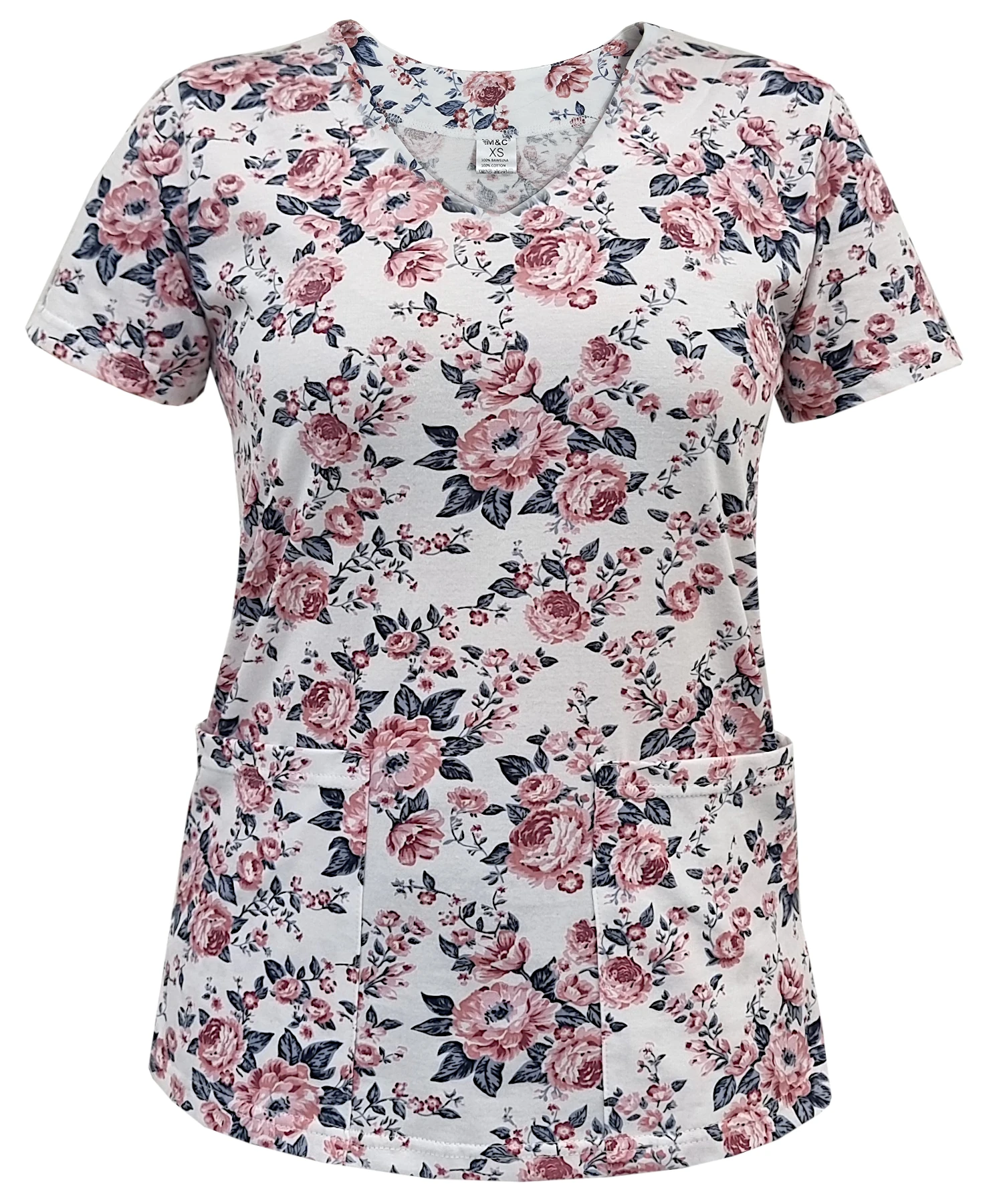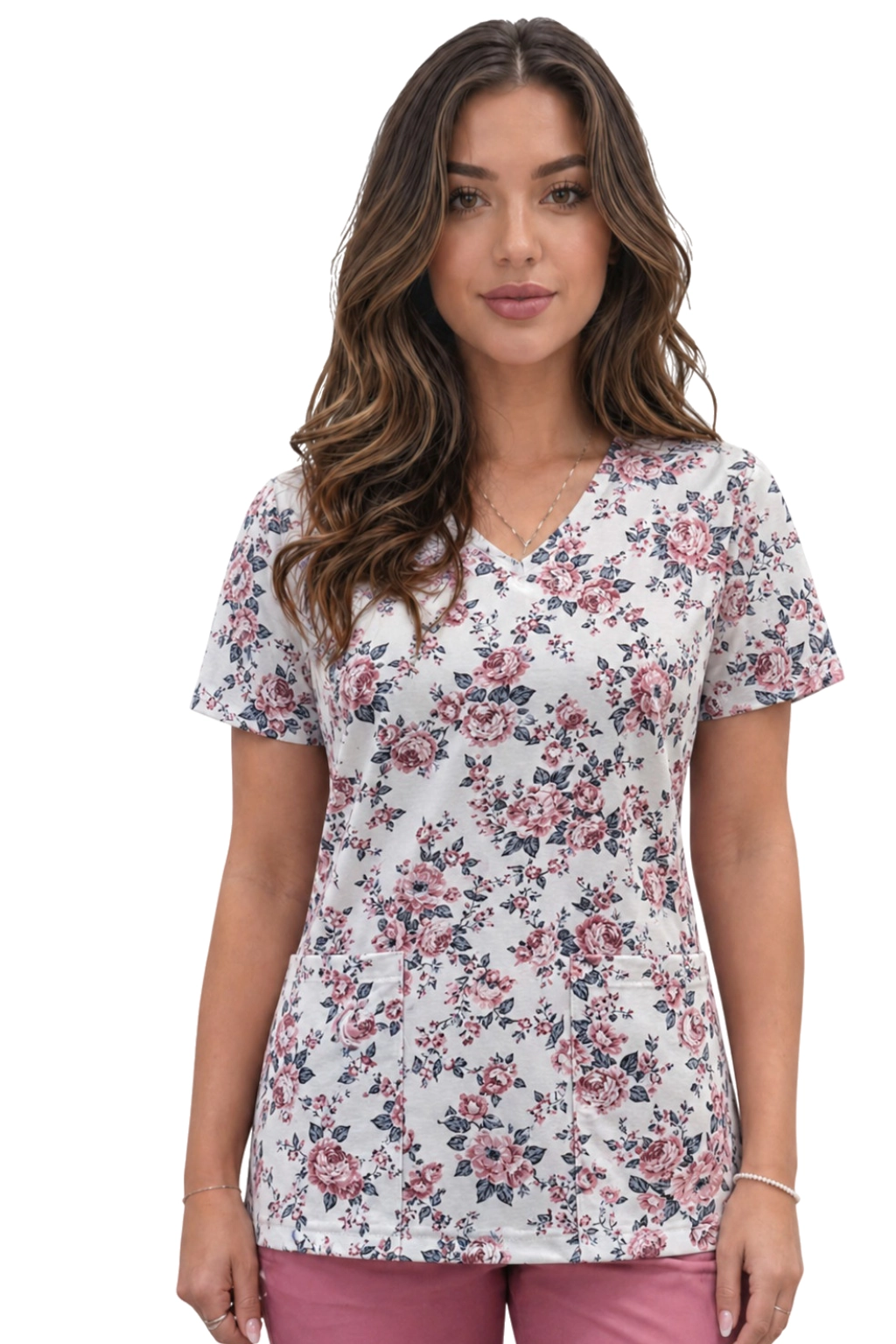 Naisten lääkintäpuvun pusero kuoseissa – 100% joustavaa puuvillaa, kuosi W11