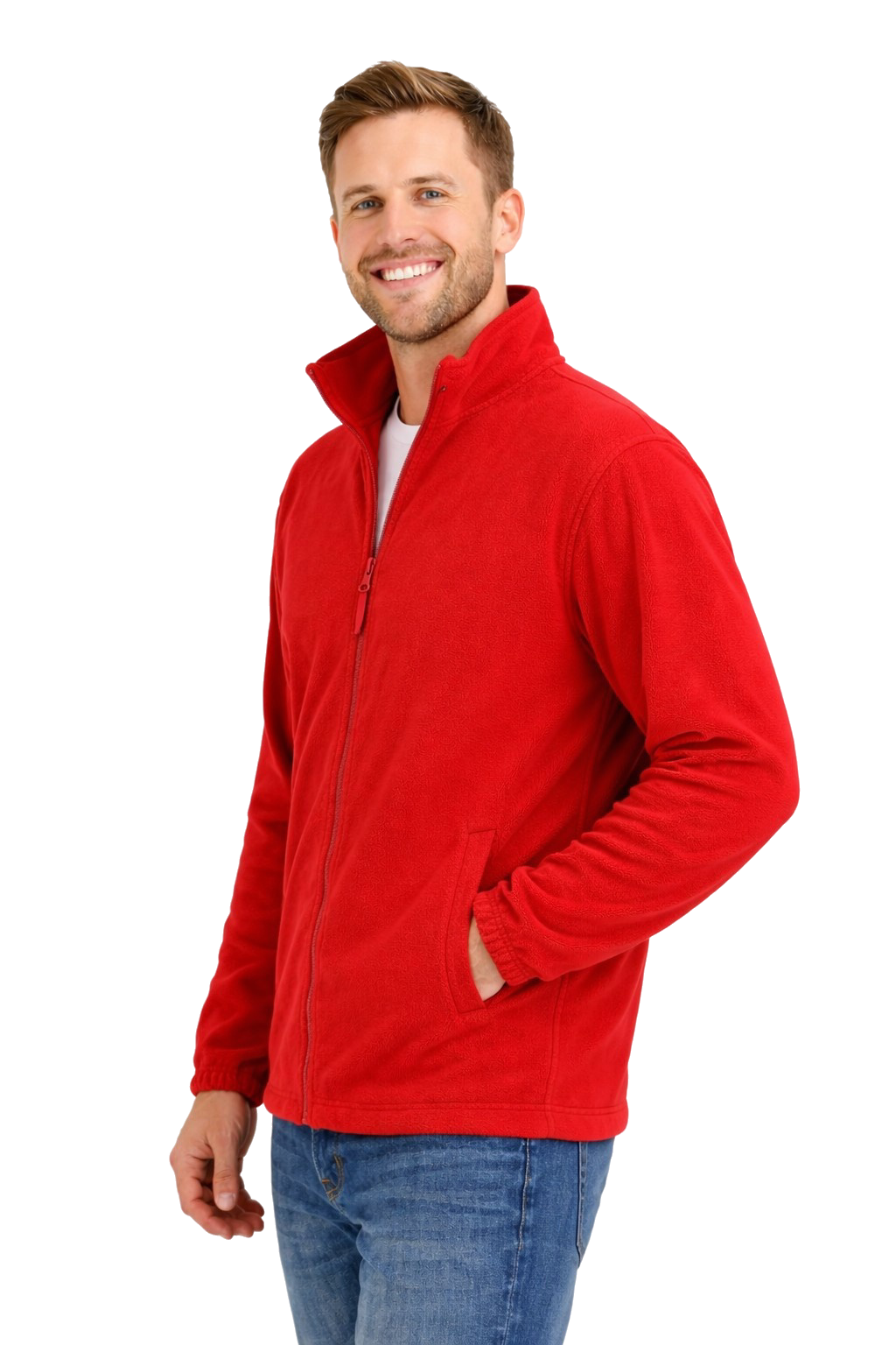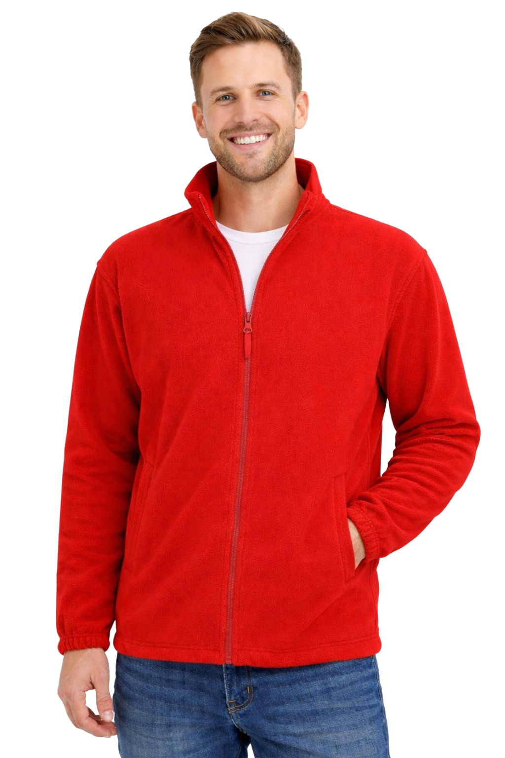 Punainen lääketieteellinen fleece-takki miehille, vetoketjulla