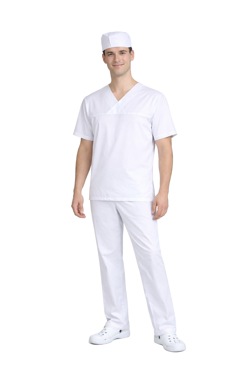 Takin yksinkertainen, ergonominen malli ei rajoita liikkeitä ja antaa vapauden työskennellä. Lyhythihainen tarjoaa mukavuutta työskenneltäessä huoneissa, joissa on korkea lämpötila, ja klassinen valkoinen väri korostaa työpaikan puhtautta ja ammattitaitoa.