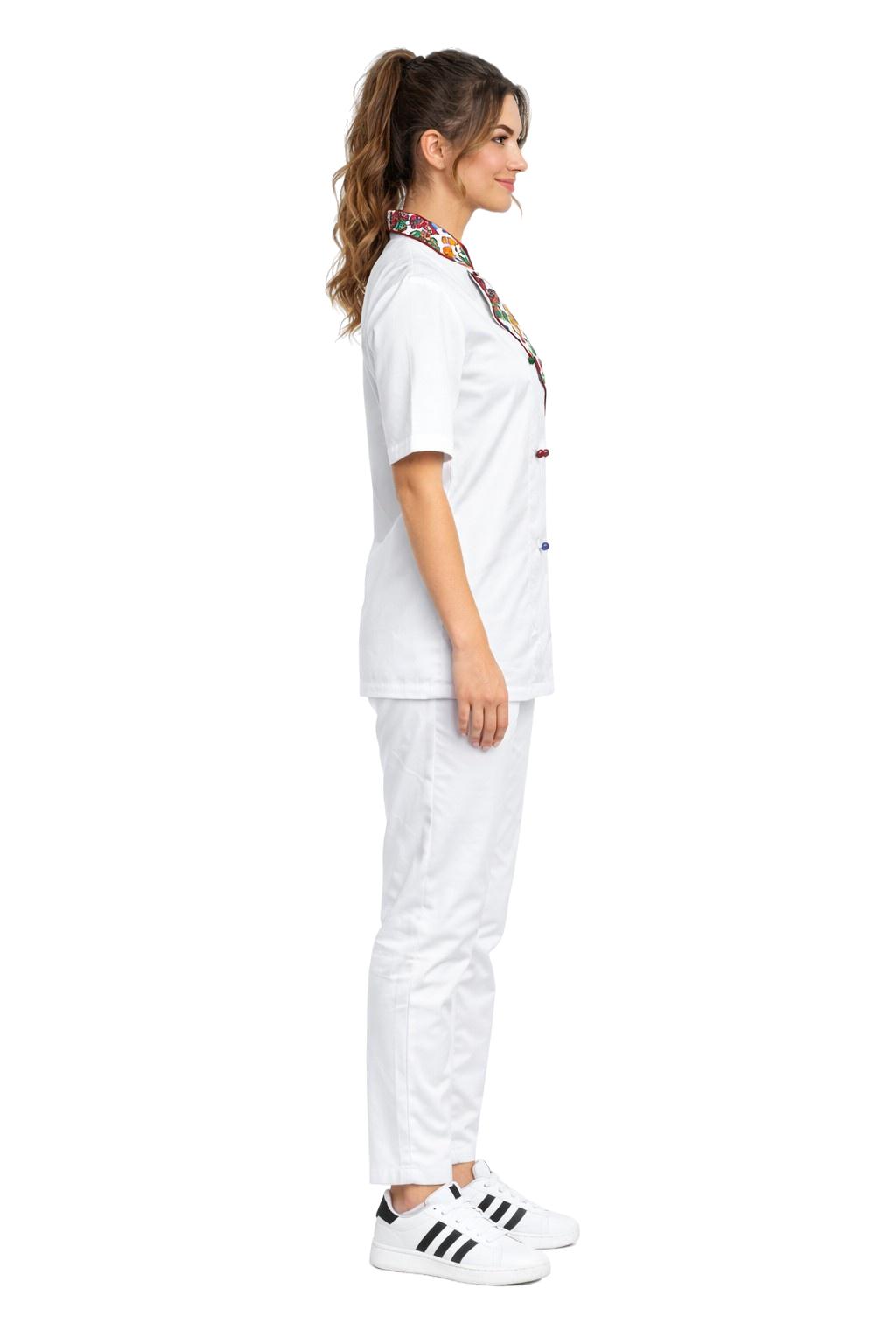 MASTER CHEF naisten kokkisetti yhdistää ammattitaidon, mukavuuden ja ainutlaatuisen tyylillä. Sarja koostuu naisellisesta kokkitakista ja mukavista työhousuista. Tämä on täydellinen valinta naisille, jotka työskentelevät ravintoloissa ja arvostavat tyylikkyyttä ja toiminnallisuutta työpaikalla.