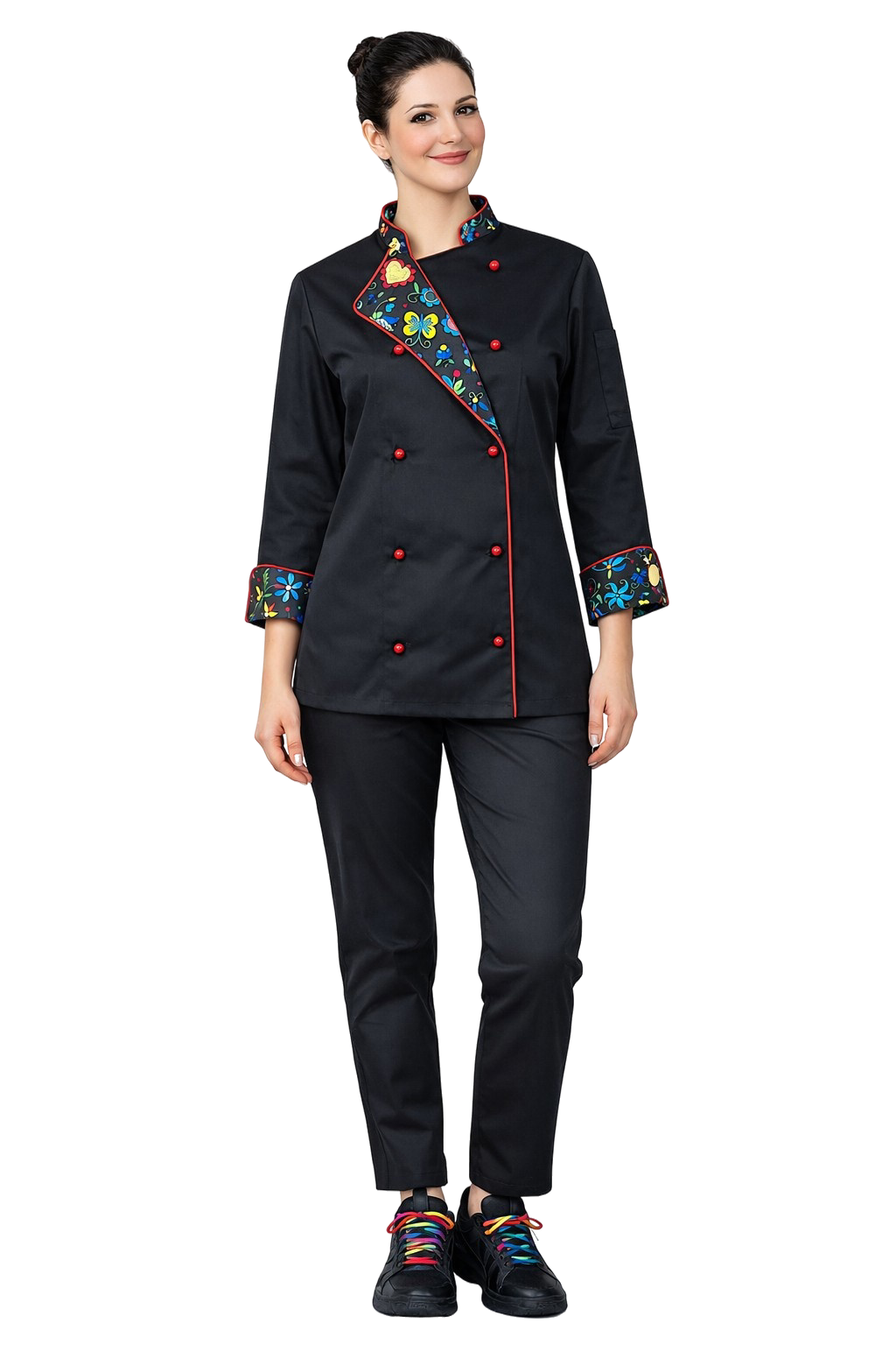 MASTER CHEF -naisten kokkisetti on ammattitaidon, mukavuuden ja ylivoimaisen tyylin yhdistelmä. Setti koostuu muotoillusta kokkiesusta ja mukavista työhousuista. Tämä on täydellinen valinta naisille, jotka työskentelevät ravintola-alalla ja arvostavat tyylikkyyttä ja toiminnallisuutta työpaikalla.
