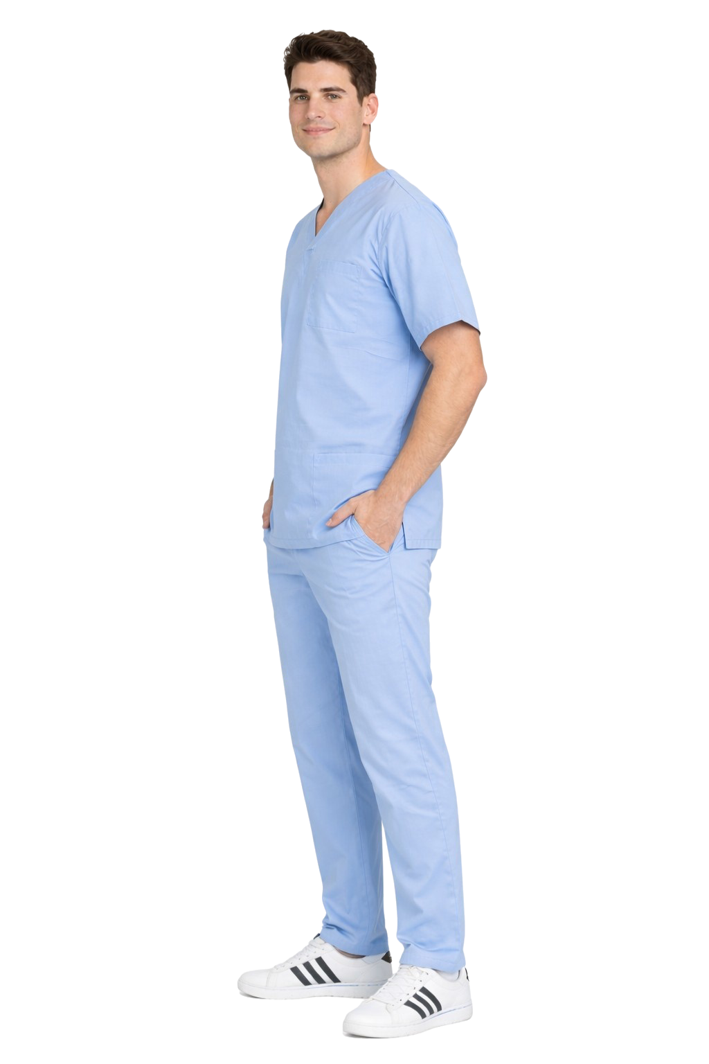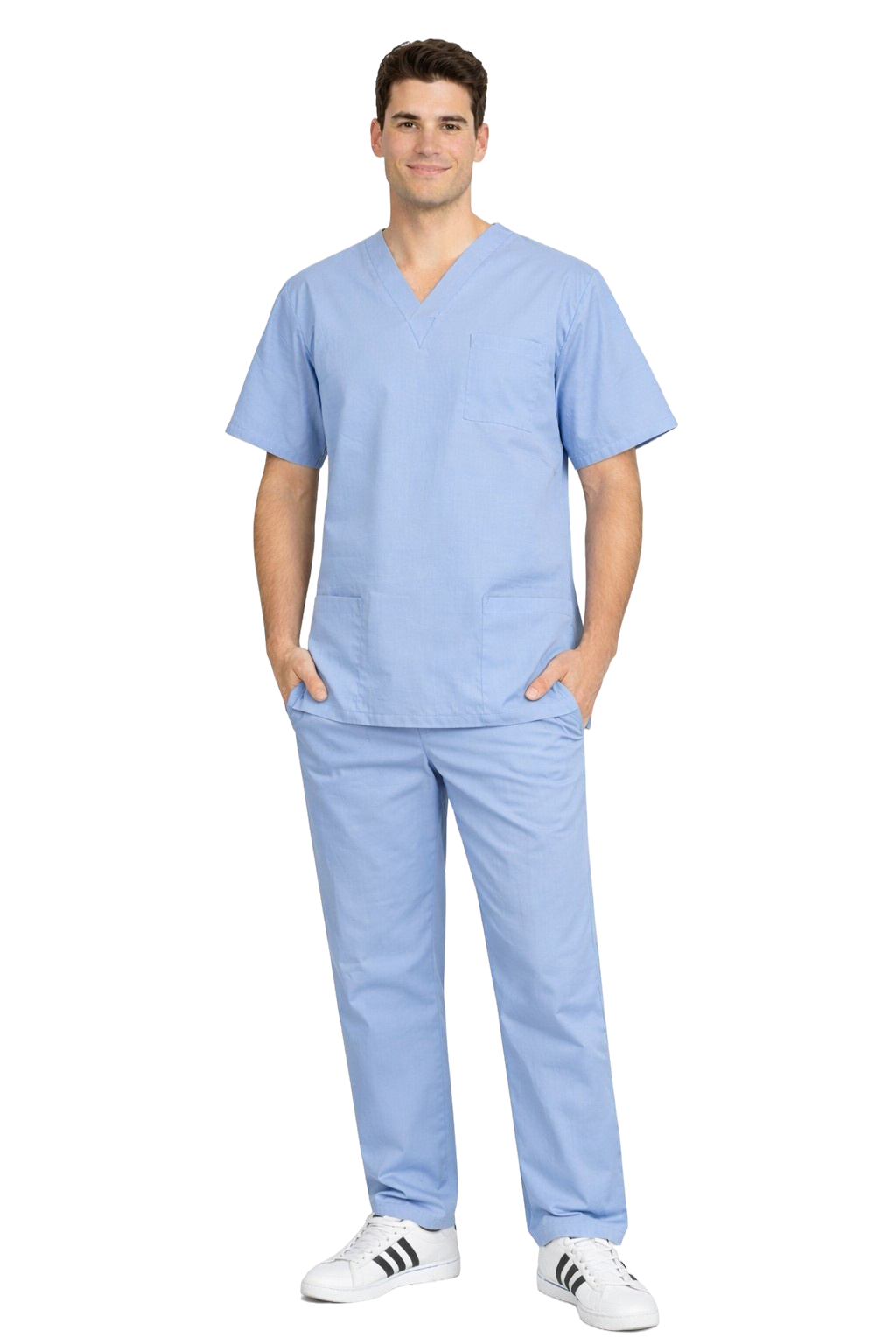 Lääketieteellinen setti 100% puuvillaa väri sininen on klassinen, monikäyttöinen sarja lääketieteelliselle henkilökunnalle – kirurgeille, lääkäreille, sairaanhoitajille ja kuntoutushenkilökunnalle. Luonnollinen kankaan paino 155 g/m² tarjoaa kestävyyttä ja mukavuutta koko päivän, ei rajoita liikkeiden vapautta. Vaatteet säilyttävät voimakkaan värin ja vakaan koon myös useiden pesukertojen jälkeen.