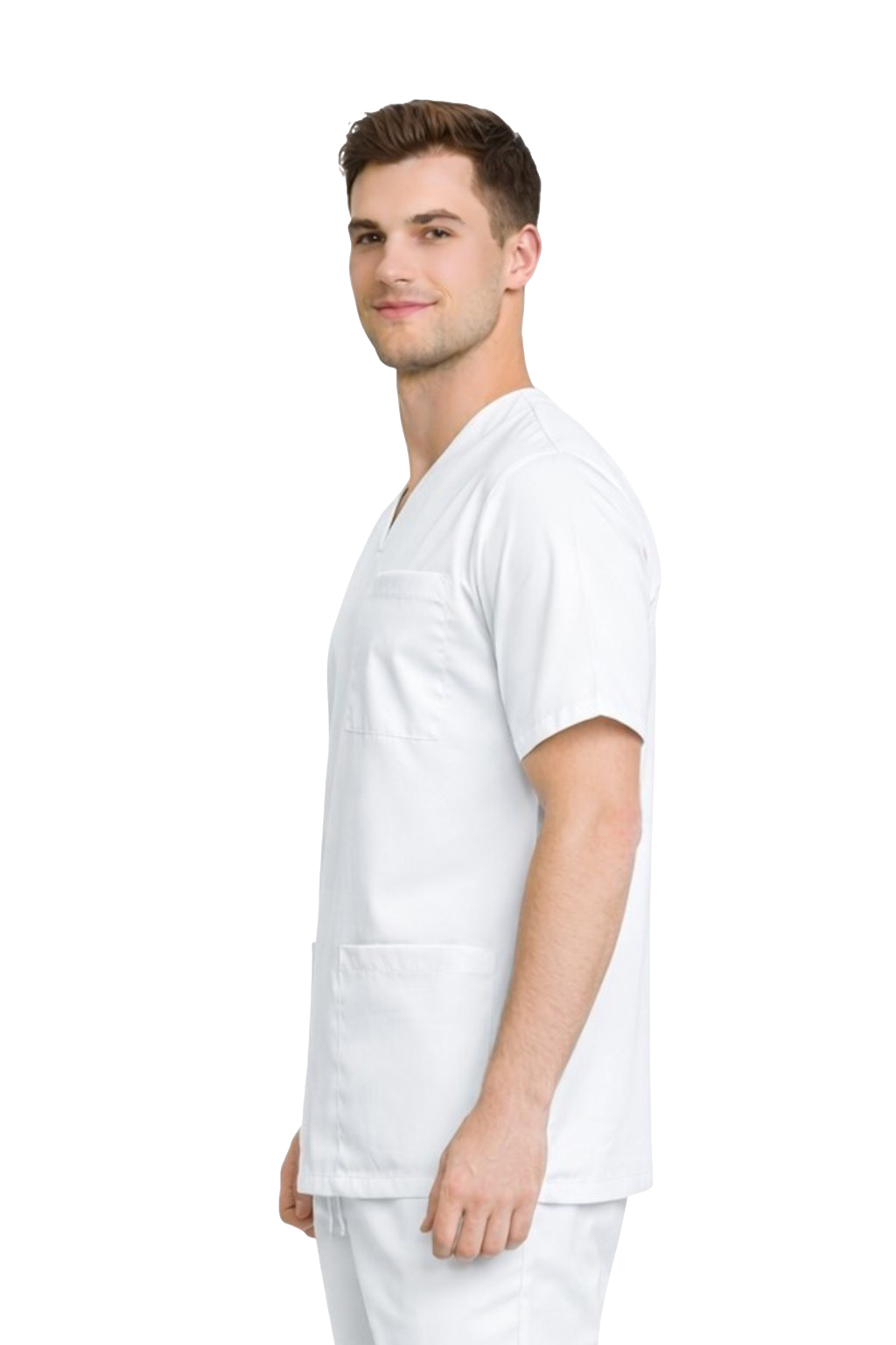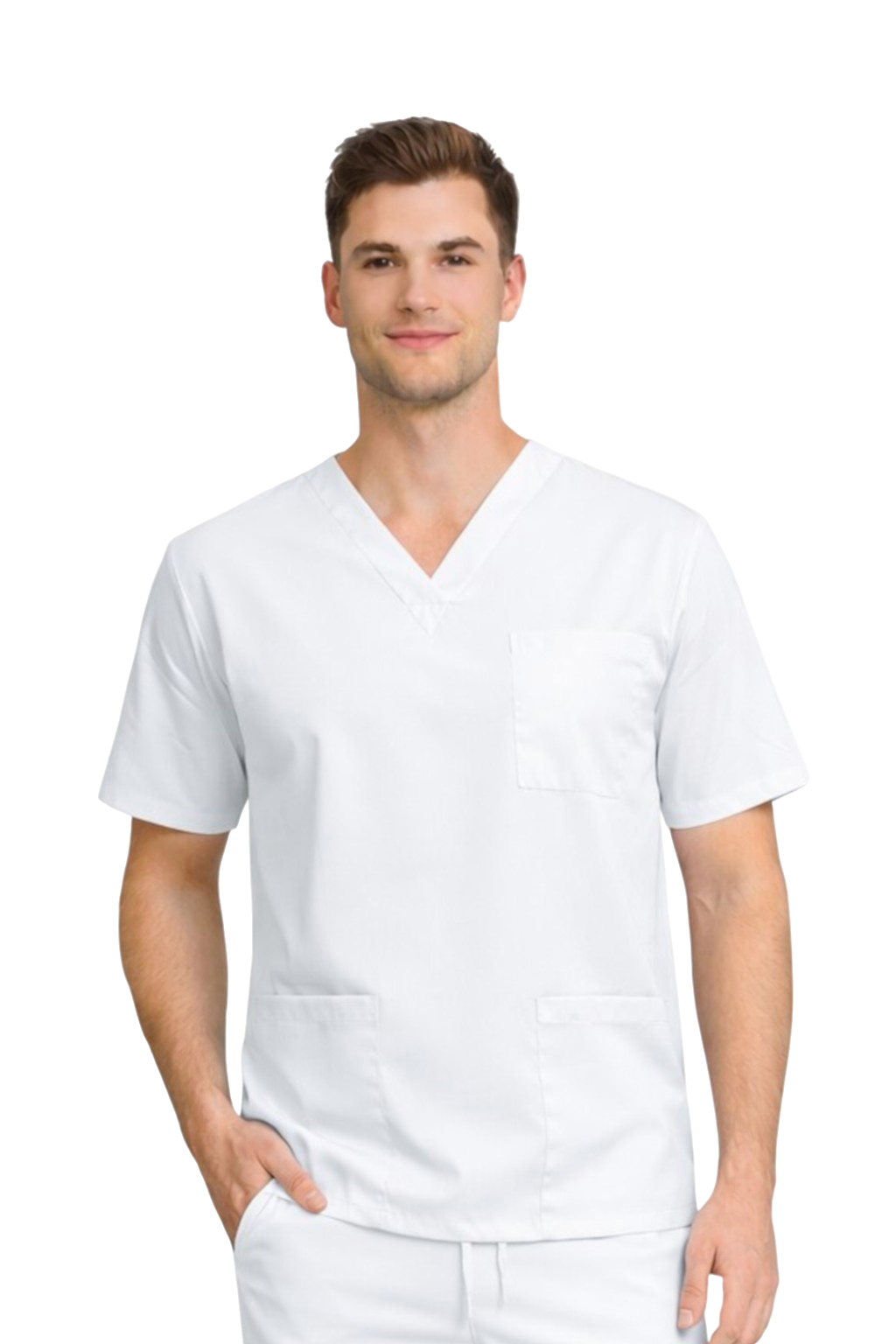 Miesten SLIM-lääketieteellinen / kirurginen pusero – joustava, valkoinen