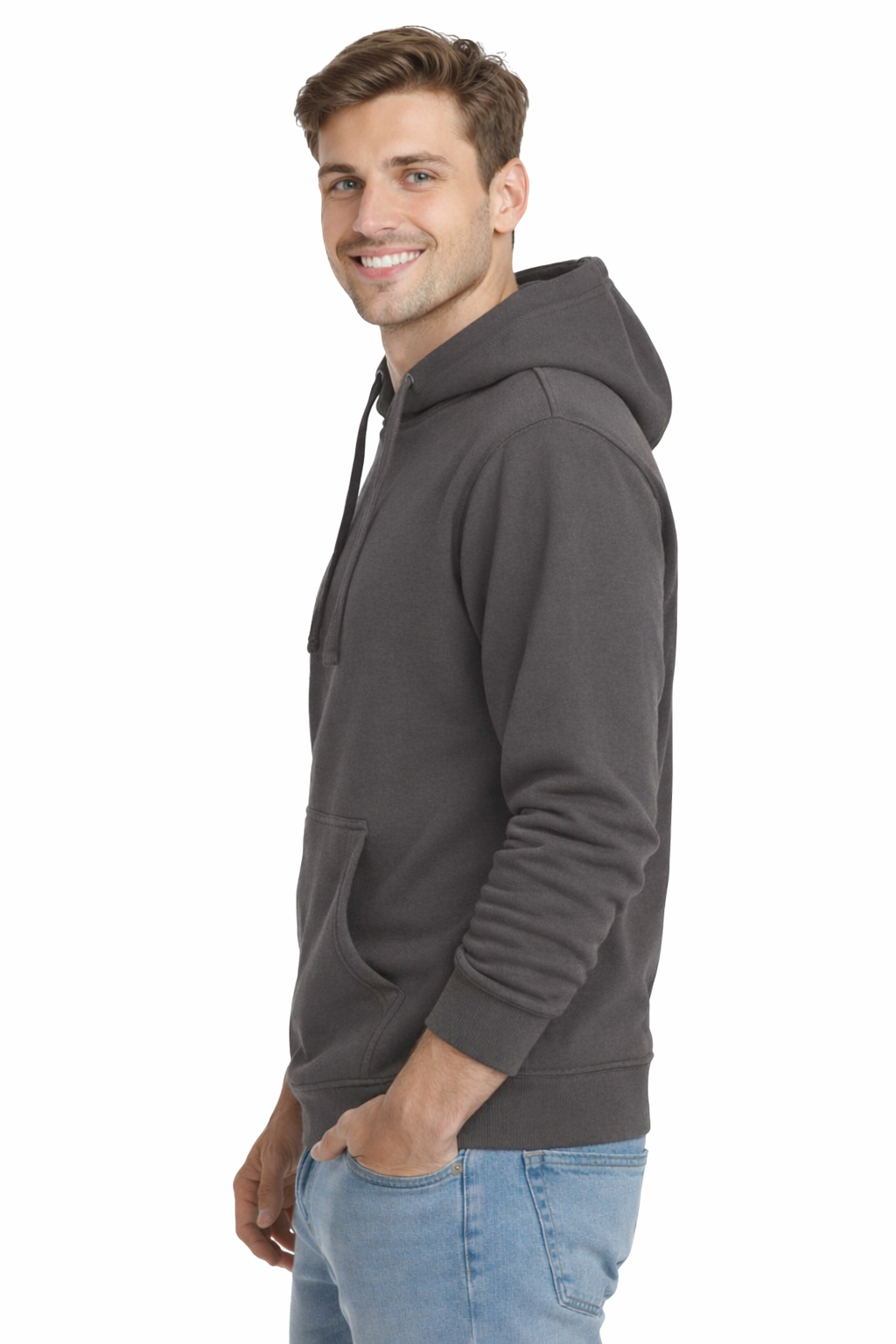 Tummanharmaa hupullinen miesten pusero, jossa pitkät hihat, yhdistää mukavuuden, toiminnallisuuden ja ajattoman tyylin. Sen klassinen leikkaus ja käytännöllinen kengurutasku sopivat sekä jokapäiväiseen käyttöön että ulkoiluaktiviteetteihin. Säädettävä huppu, jossa on värillinen naru, korostaa puseron urheilullista luonnetta, ja laaja värivalikoima (jopa 29 värivaihtoehtoa) mahdollistaa täydellisen mukauttamisen yksilöllisiin tarpeisiisi.