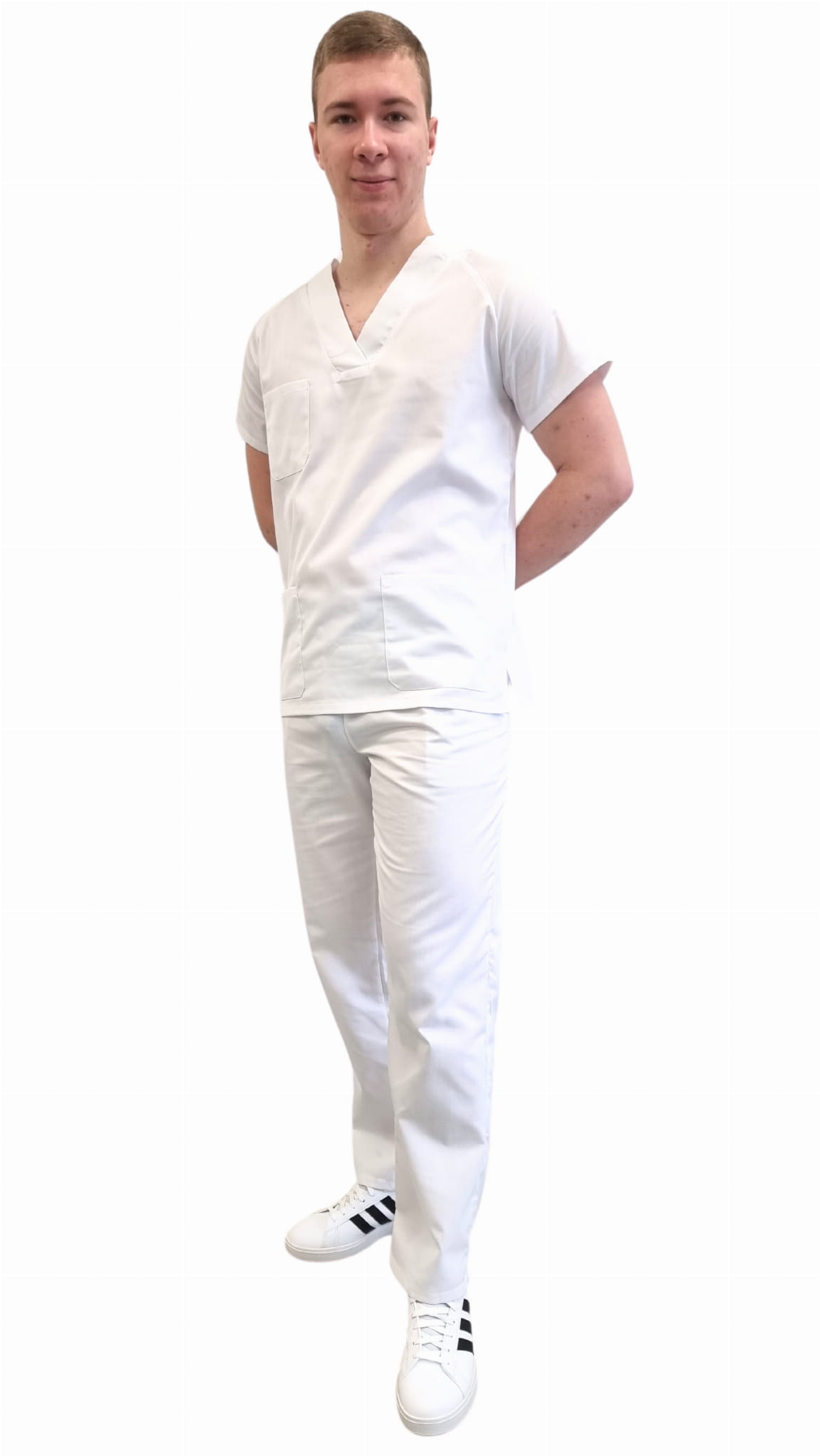 Pusero on suunniteltu ilman nauhoja ja vyötä, mikä tekee siitä ihanteellisen valinnan työskennellä lääketieteellisessä ja hoitoympäristössä. Turhien elementtien puuttuminen vähentää tartuntariskiä ja lisää turvallisuutta ja käyttömukavuutta.