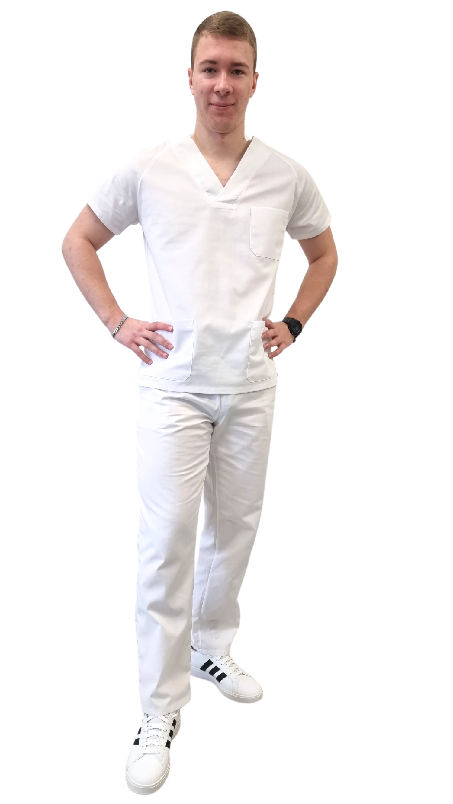 Miesten kirurginen pusero on toimiva lääketieteellisen vaatetuksen elementti, suunniteltu mukavuutta ja käytännöllisyyttä silmällä pitäen intensiivisen työpäivän aikana. Tuote on tarkoitettu lääkäreille, sairaanhoitajille, terapeuteille, eläinlääkäreille, sekä miehille, jotka työskentelevät kauneudenhoito-, SPA-, wellness- ja esteettisessä lääketieteessä.
