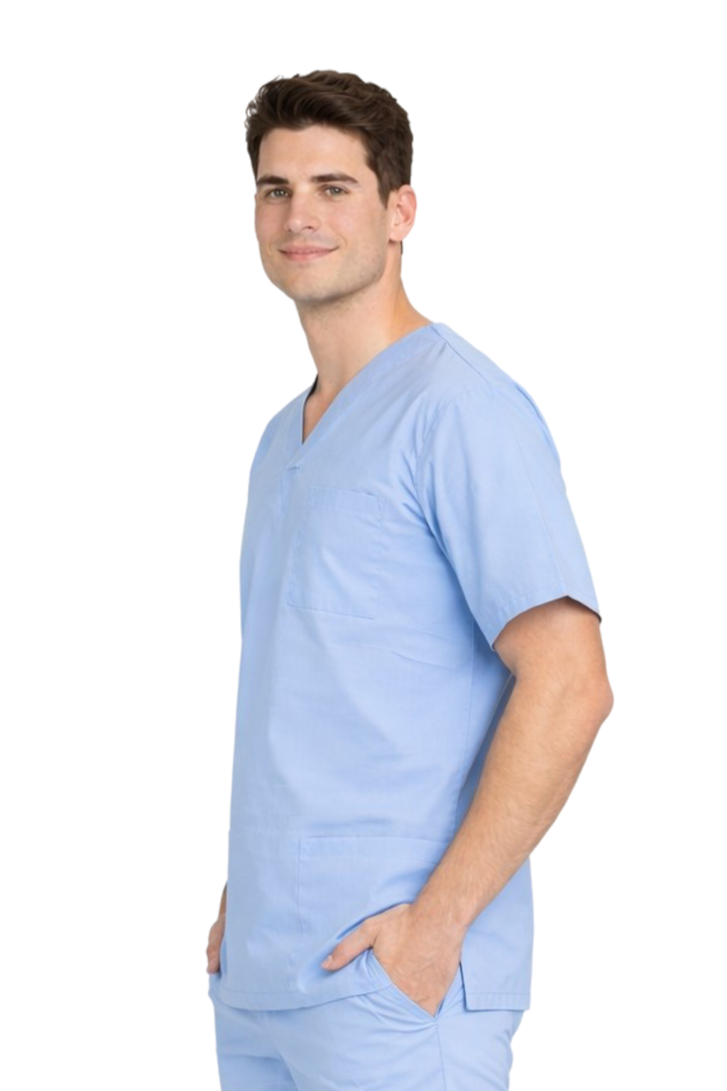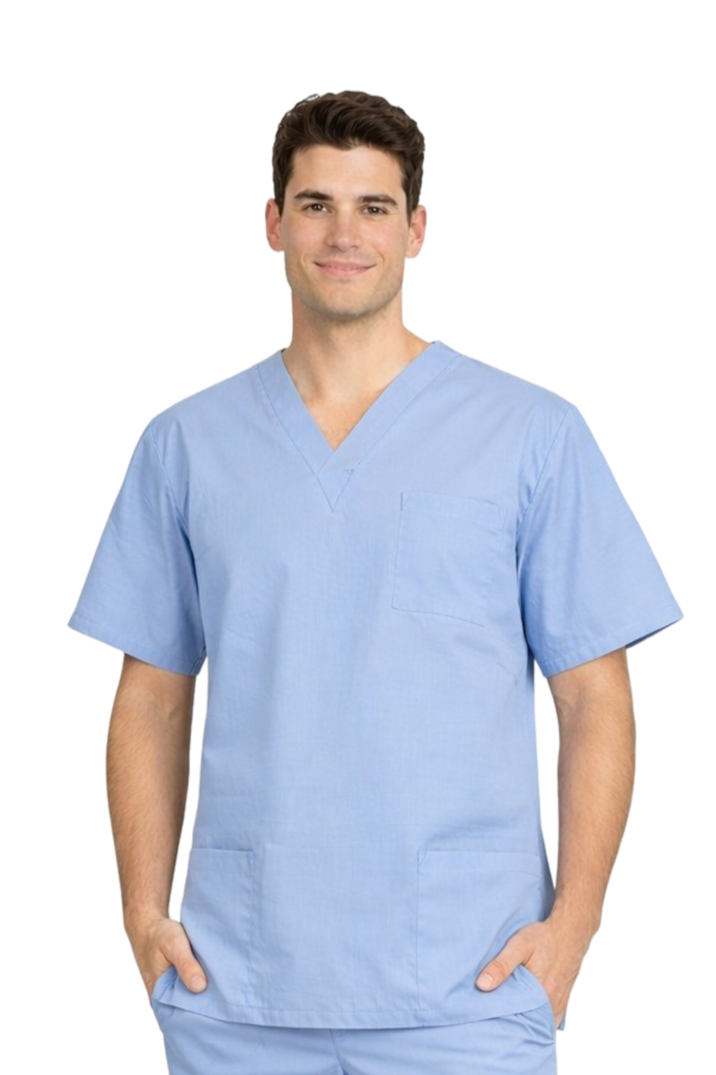Sininen miehen lääketieteellinen pusero valmistettu 100% laadukkaasta puuvillasta on korvaamaton osa suojavälineitä lääkäreille, kirurgeille, sairaanhoitajille ja fysioterapeuteille. Luonnollinen materiaali tarjoaa kestävyyttä, mukavuutta ja liikkuvuuden vapautta, mikä on erittäin tärkeää intensiivisessä työssä leikkaussaleissa ja operaatiosaleissa.