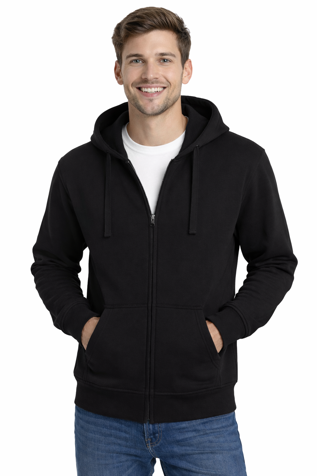 Miesten huppari yhdistää mukavuuden, toiminnallisuuden ja modernin designin. Täyspitkä vetoketju ja tasku kangaskappaleella takaavat käytön mukavuuden päivittäin ja työssä. Joustavat hihansuut ja huppu tarjoavat täydellisen istuvuuden, kun taas huppu naruilla suojaa kylmältä ja tuulelta.
