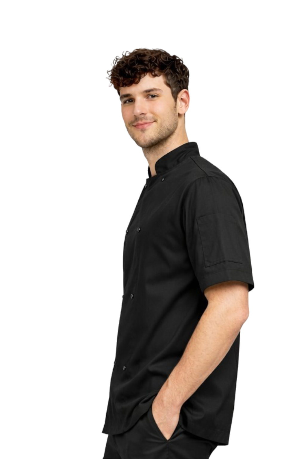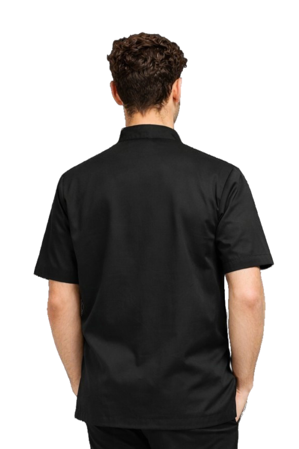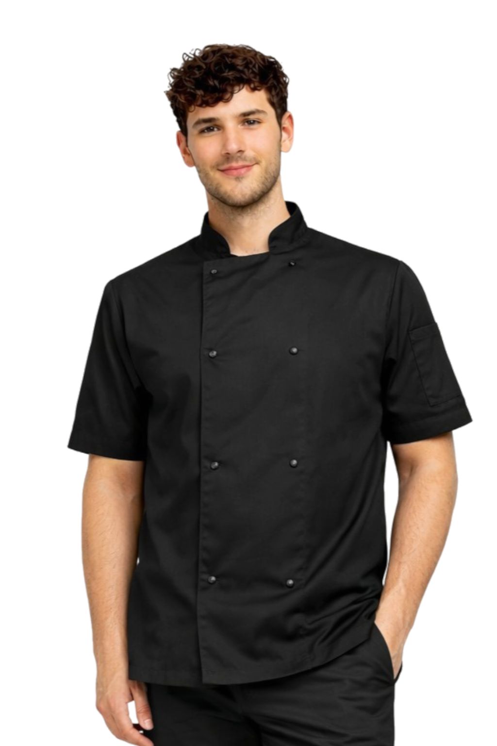 Miesten musta keittiötakki nepparilla – lyhyt hiha gastronominen takki