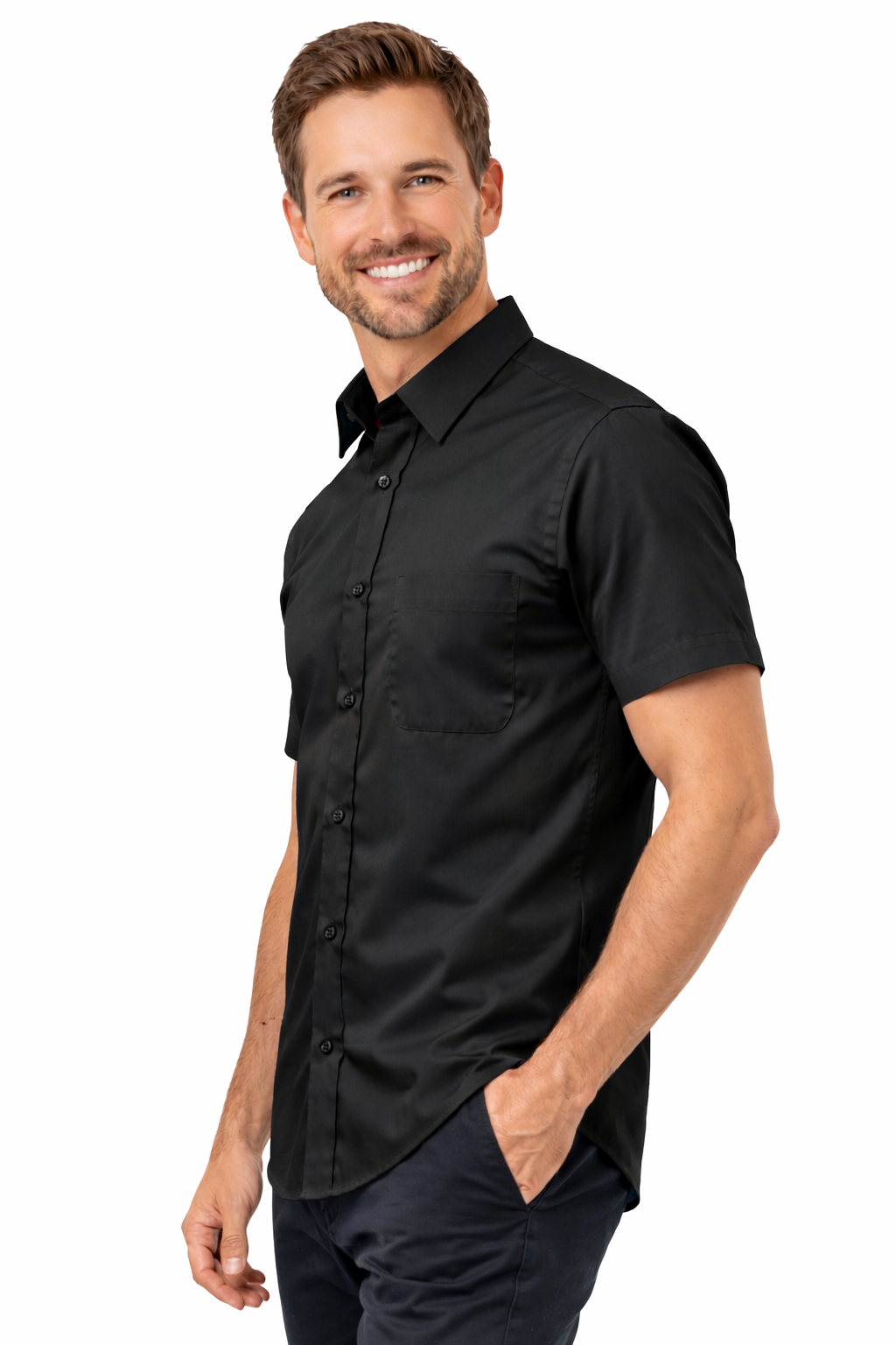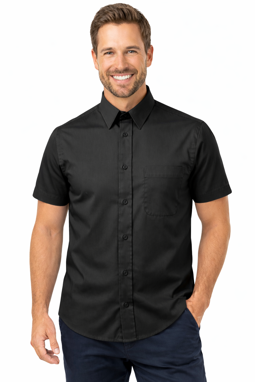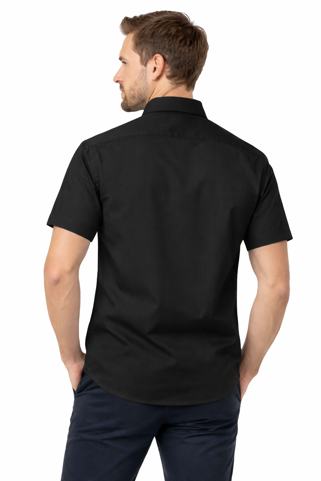 Musta miesten paita, lyhythihainen – popliinia, kestävä ja tyylikäs
