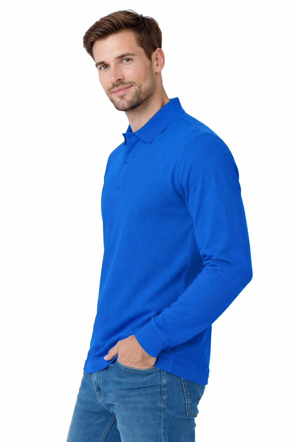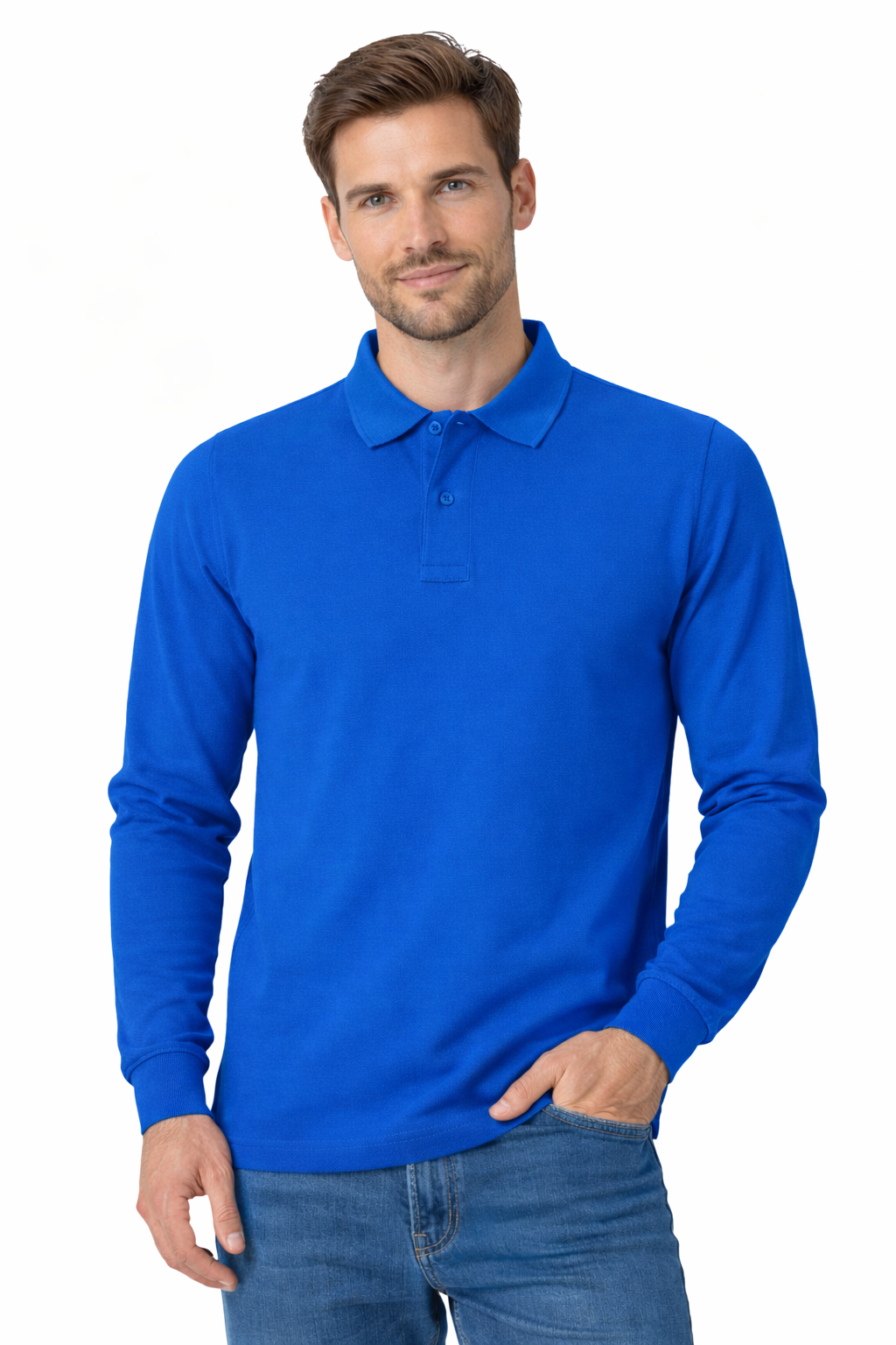 Miehen pitkähihainen ruiskaunokki-polopaita