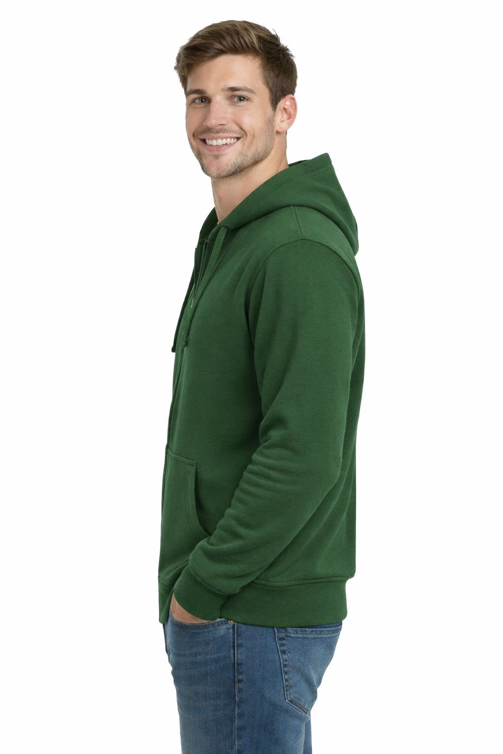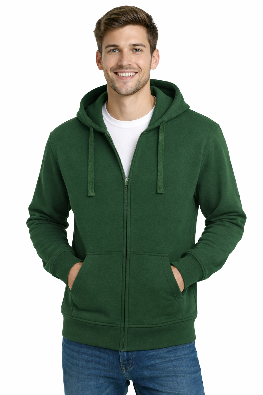 Miesten vihreä pullonvärinen huppari – vetoketjulla