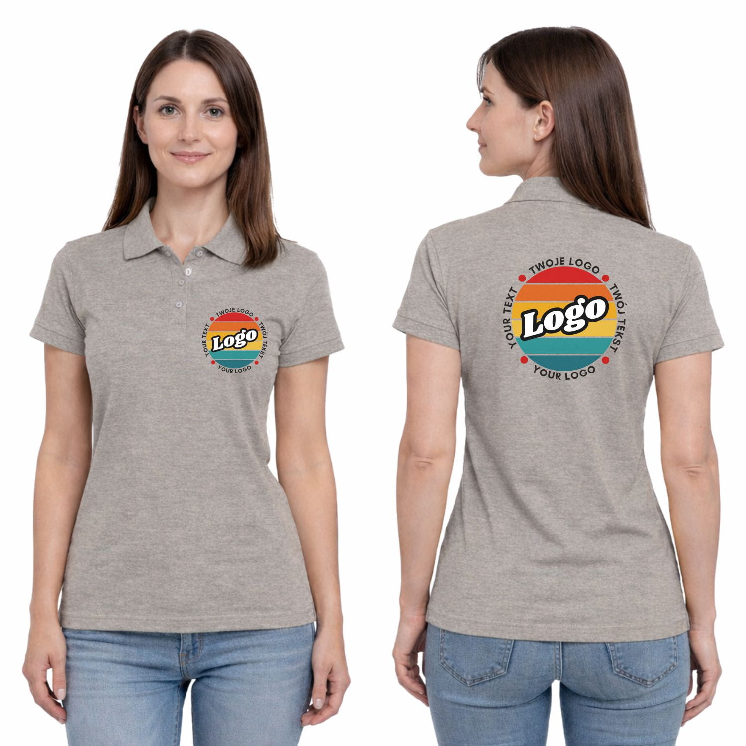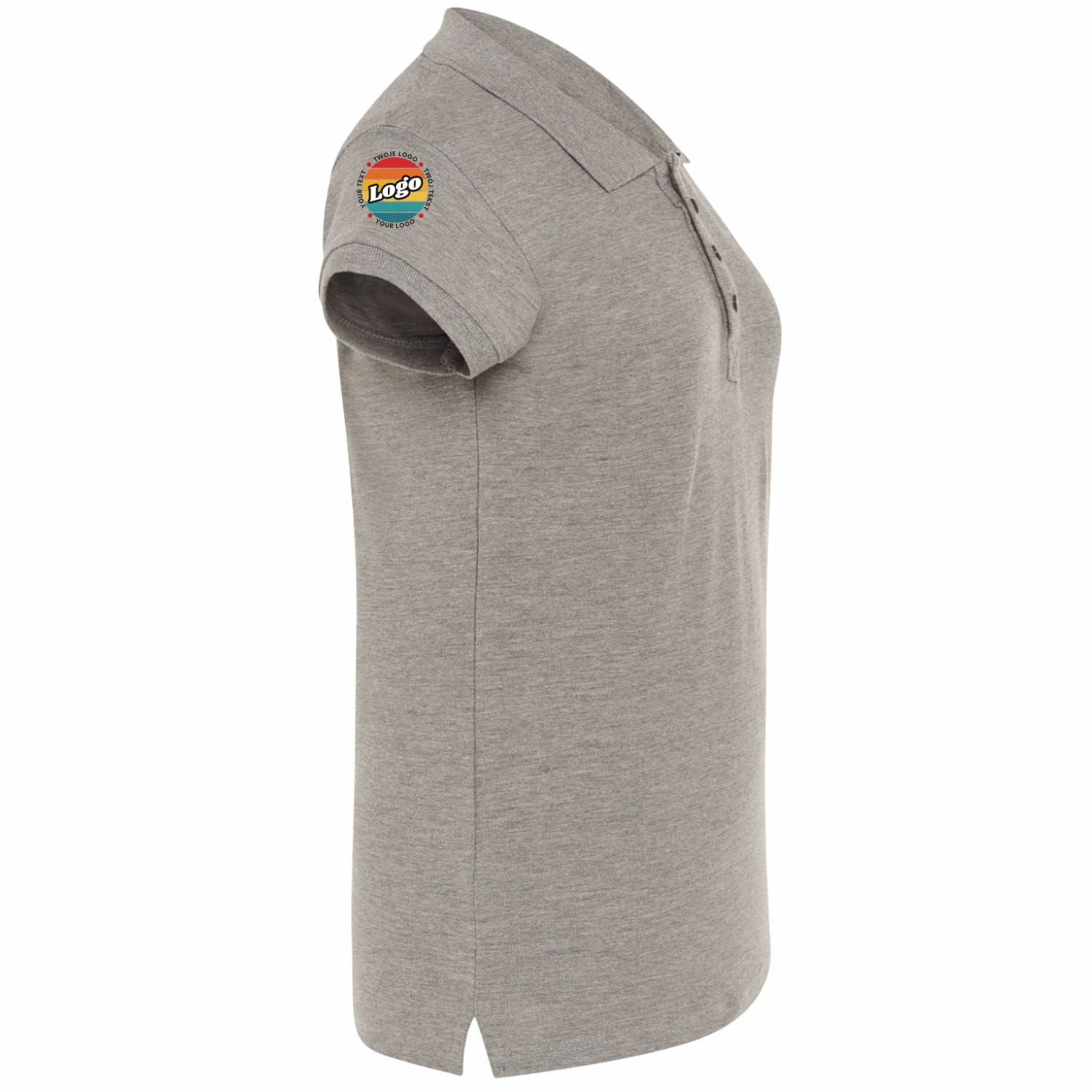 Naisten harmaa polo-paita omalla painatuksellasi