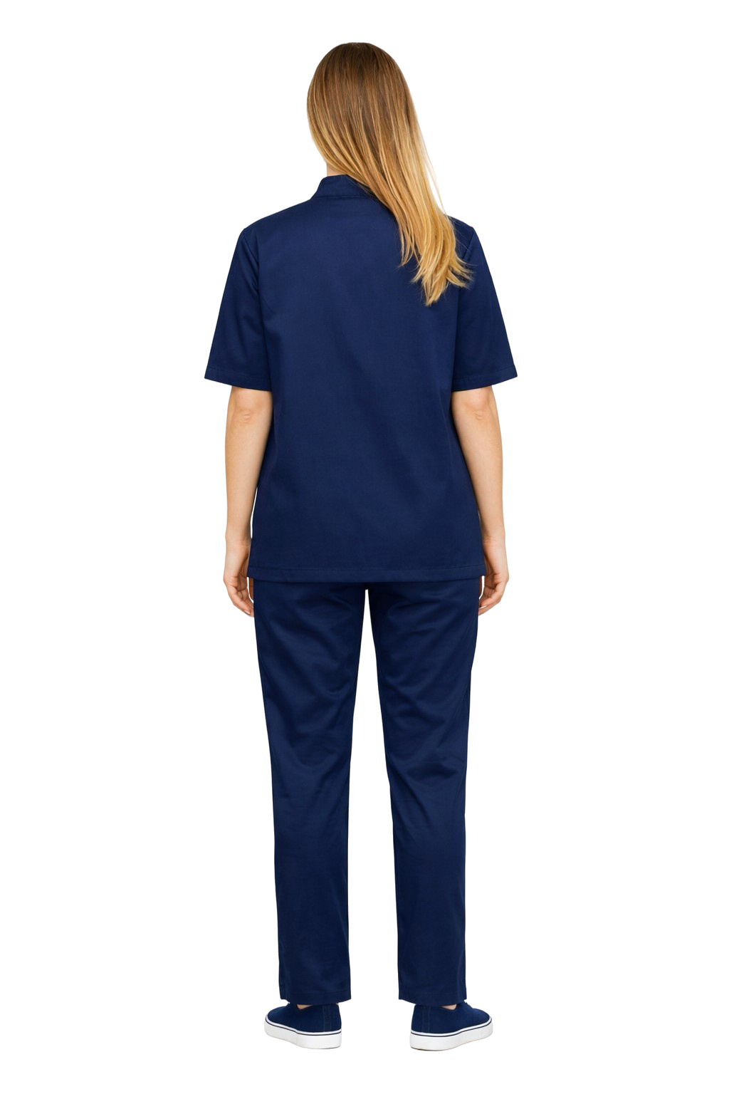 Elastaanin lisäyksen ansiosta setti tarjoaa korkean työskentelymukavuuden, esteettisen ulkonäön ja täyden liikkumisvapauden. Puseron muotoilu ja housujen mukava leikkaus varmistavat, että setti sopii täydellisesti naisten vartaloon ja tukee ammattimaista ilmeesi työpaikalla.