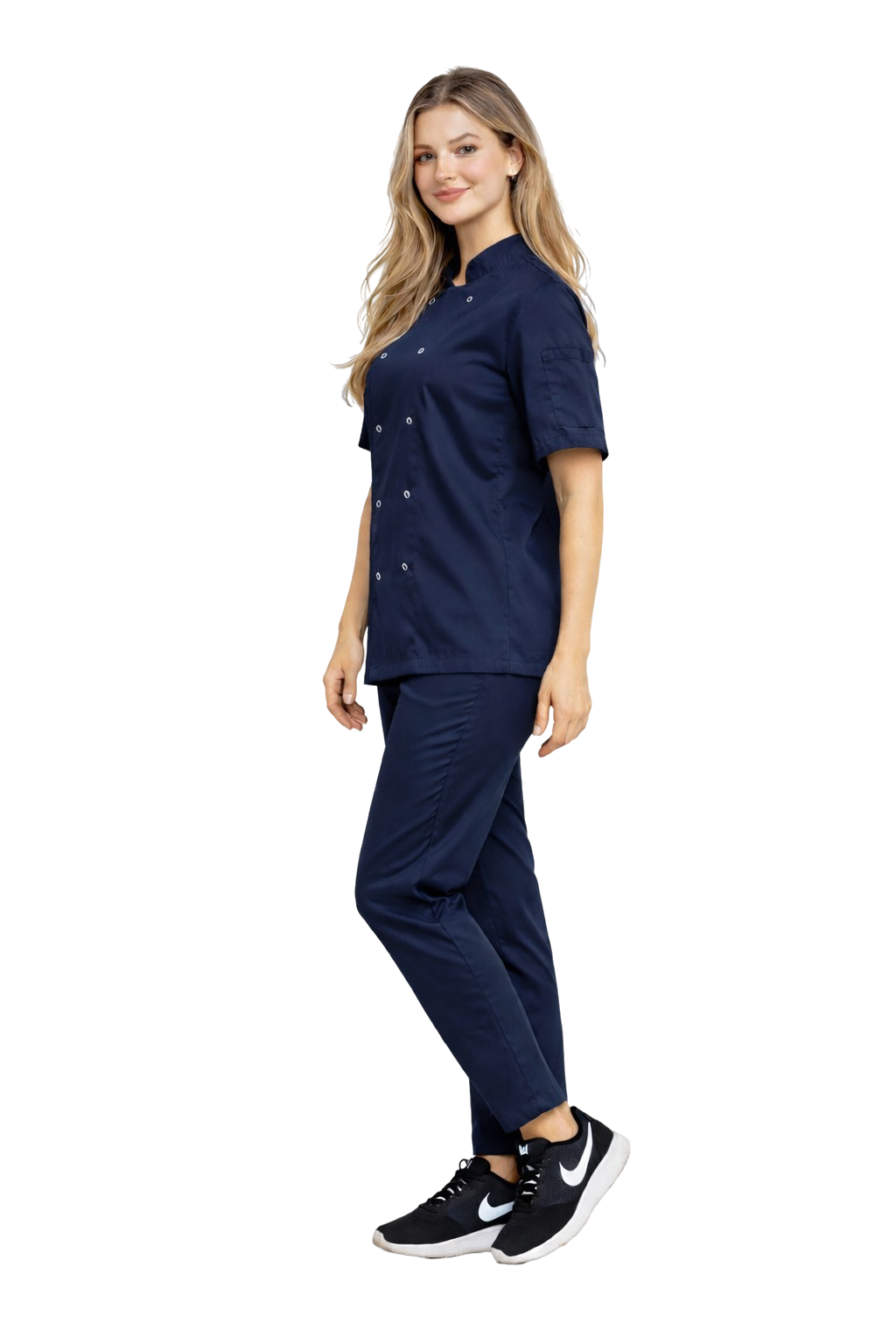 Naisten kokkiasusetti on moderni ravintola-alan vaatesetti, joka on suunniteltu naisille, jotka työskentelevät ammattikeittiöissä, joissa korostetaan mukavuutta, estetiikkaa ja täydellistä liikkumisen vapautta. Siisti, istuva työasu korostaa ammattitaitoa ja luo asiakkaiden luottamusta.