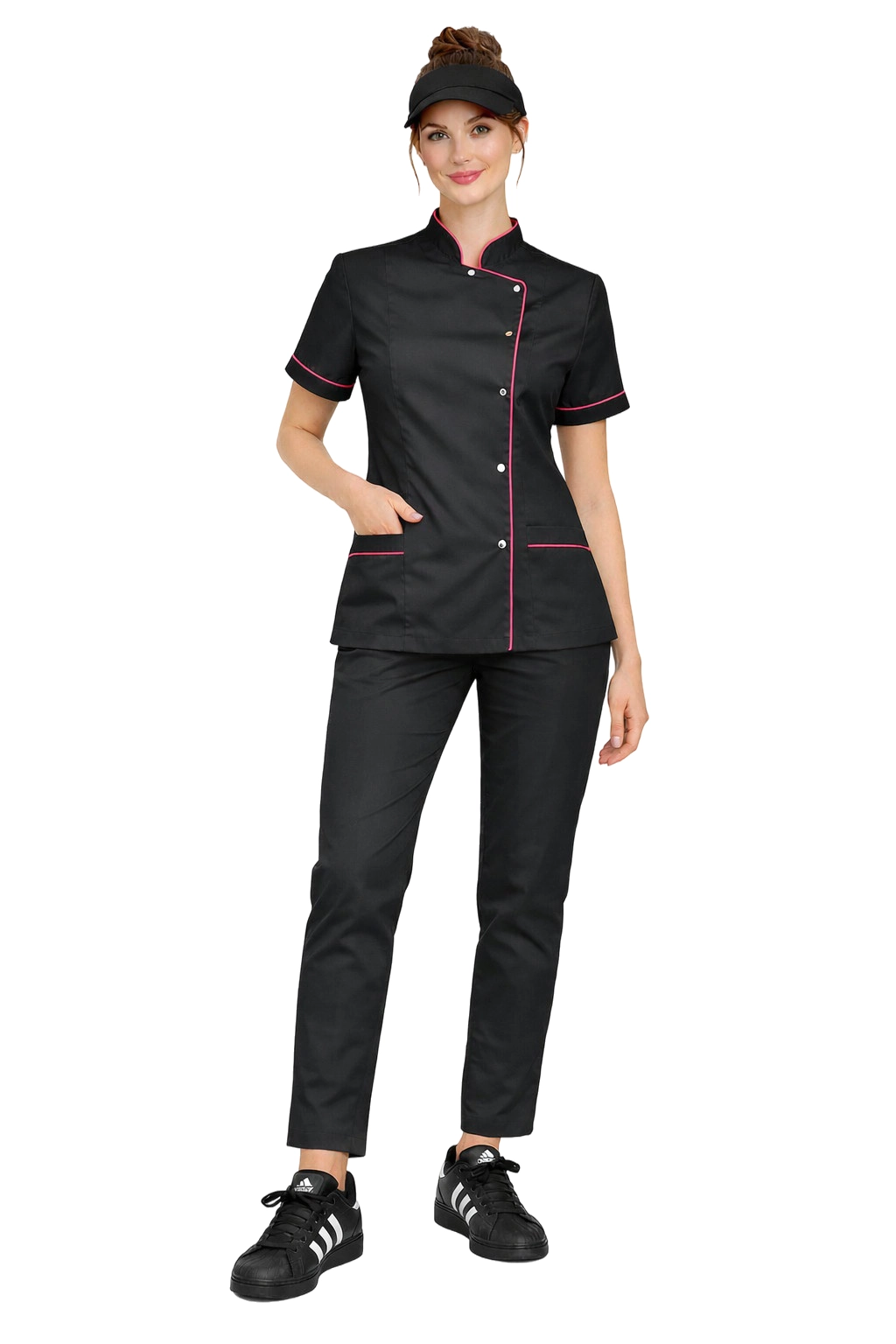 Naisten kokkisetti on täydellinen yhdistelmä eleganssia, toiminnallisuutta ja mukavuutta, suunniteltu erityisesti ravintola-alalla työskenteleville naisille. Setti yhdistää modernin muotoilun ja käytännölliset ratkaisut, jotka toimivat tehokkaasti jopa intensiivisten keittiövuorojen aikana. Huolellisesti viimeistellyt yksityiskohdat ja korkealaatuiset materiaalit tekevät setistä ammattimaisen näköisen ja takaavat mukavuuden koko päivän ajan.
