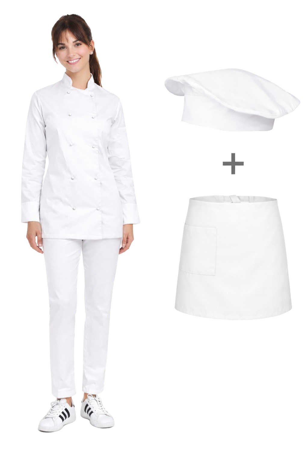 Naisten kokkiuniformu - täydellinen setti ravintola-alan työhön