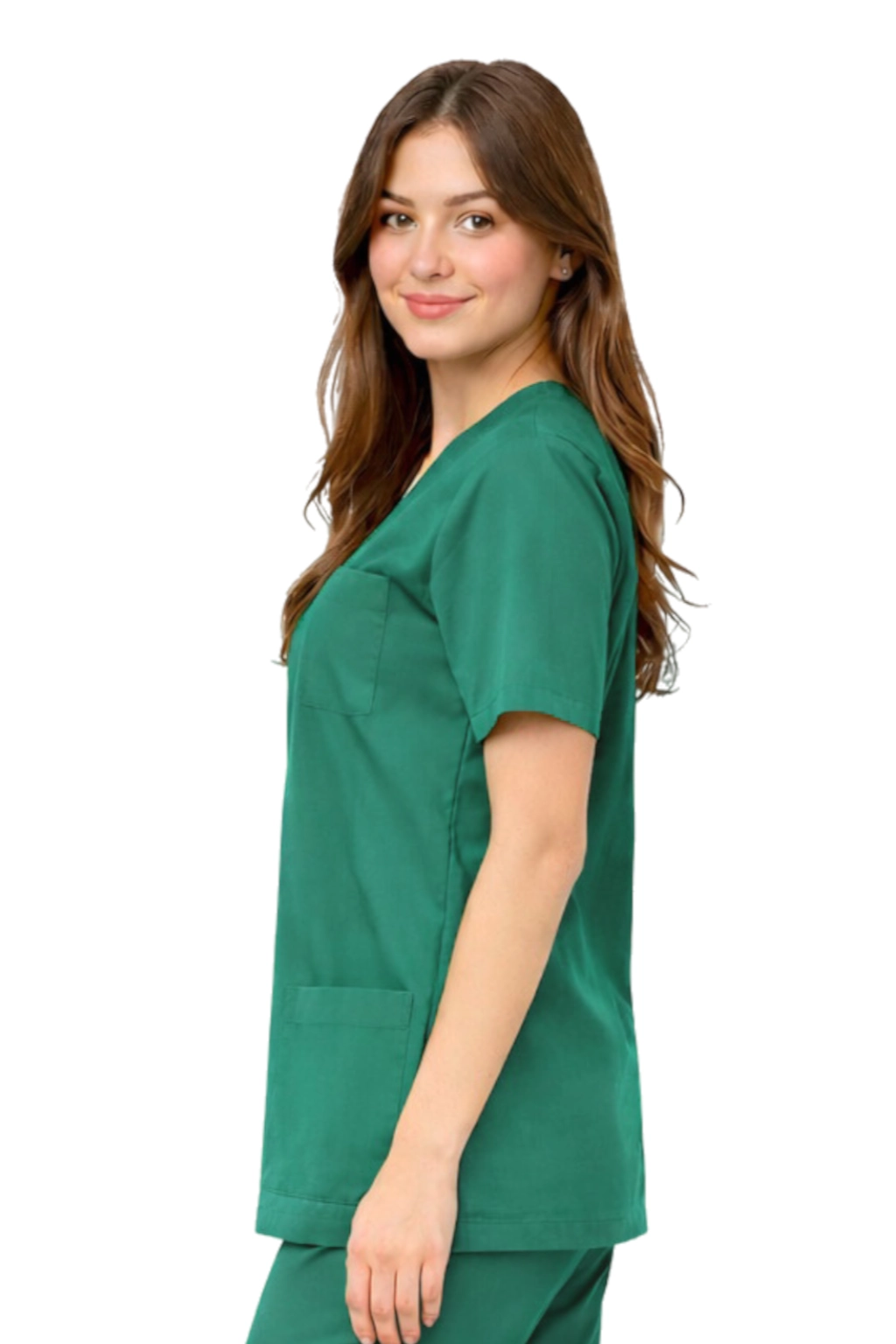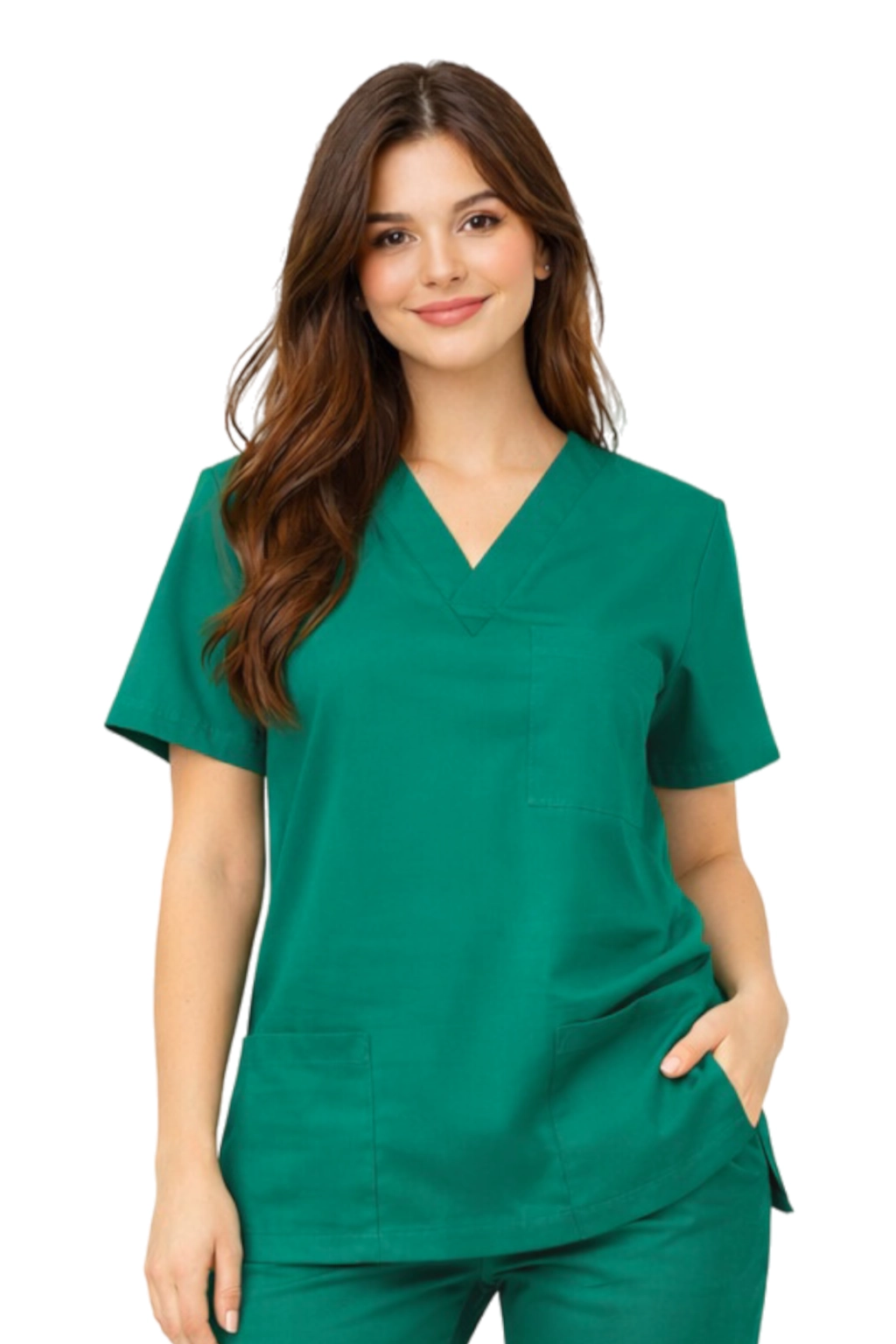 Naisten vihreä lääketieteellinen pusero on valmistettu kokonaan 100% korkealaatuisesta puuvillasta, mikä tekee siitä ihanteellisen valinnan lääkäreille, sairaanhoitajille ja fysioterapeuteille. Luonnollinen materiaali tarjoaa maksimaalisen mukavuuden, liikkumavapauden ja kestävyyden – väri pysyy voimakkaana ja koko vakiona myös monien pesukertojen jälkeen. Se on korvaamaton vaatekappale kirurgian osastoille, leikkaussaleihin ja lääketieteellisiin vastaanottoihin.