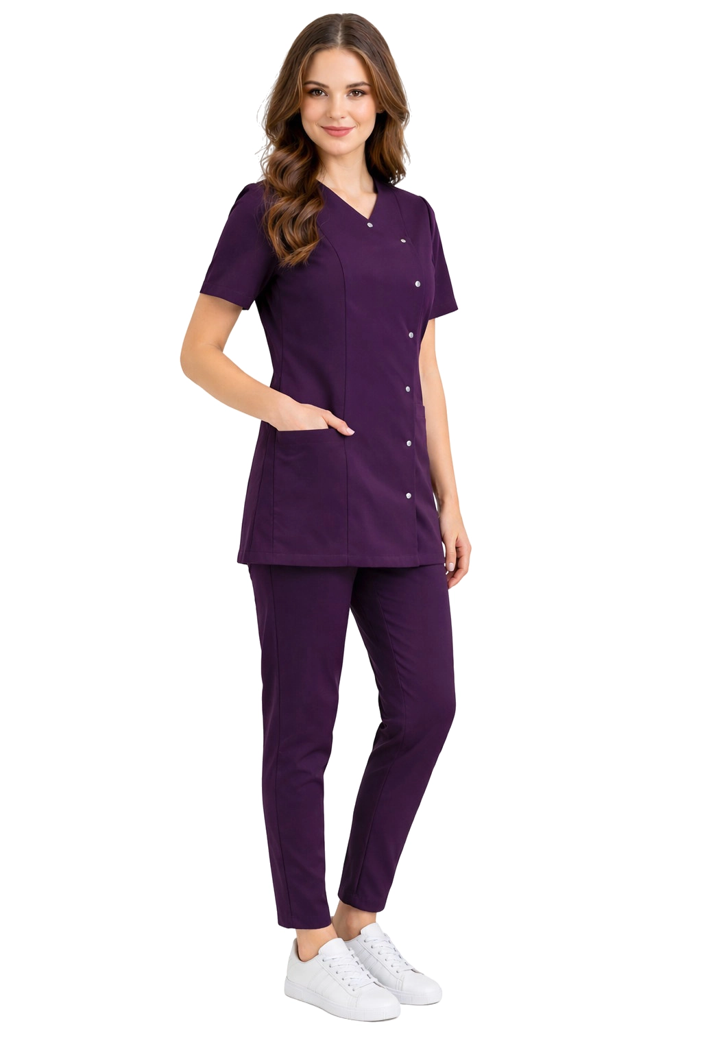Basic Premium -naisten lääkintä-/kosmeettinen setti violetissa värissä on ihanteellinen ratkaisu lääketieteen ja kosmetiikan ammattilaisille. Valmistettu korkealaatuisista materiaaleista, se tarjoaa mukavuutta ja tyylikkään ulkonäön. Huolellisen leikkauksen ansiosta setti sointuu hyvin vartalon muotoihin, ja sen värimaailma edesauttaa puhtauden ja eleganssin ylläpitoa. Valitse Basic Premium ja korosta ammattitaitoasi ja tyyliäsi työssä.