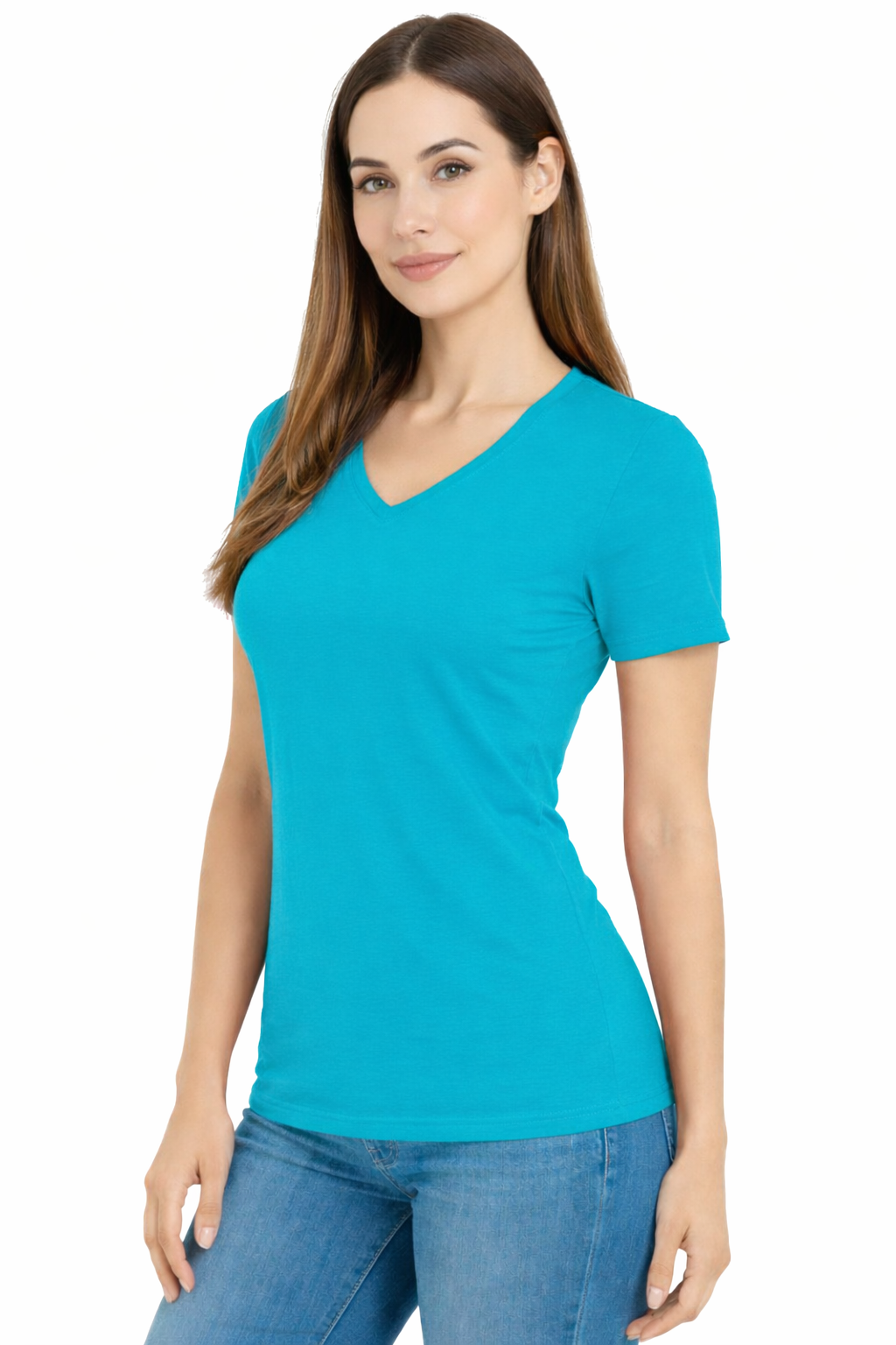 Lyhythihainen t-paita – naisten turkoosi, puuvillainen v-aukkoisella kaula-aukolla