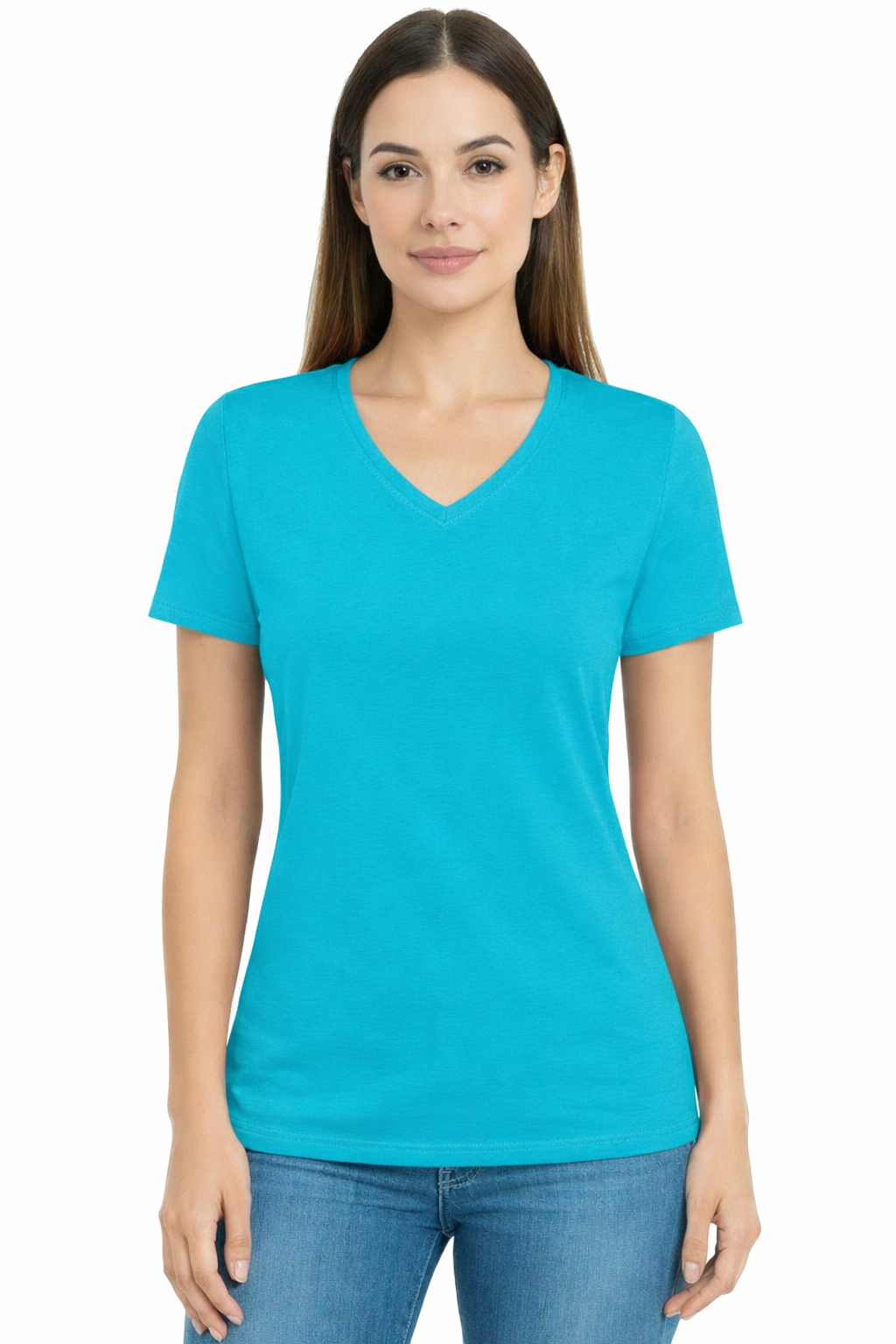 Naisten turkoosi lyhythihainen, V-kaula-aukollinen t-paita on kevyt, mukava valinta päivittäiseen käyttöön ja työhön. Single Jersey -neuloksesta valmistettu 100% puuvillaa, antaa ilmankierron ja mukavuuden. Istuva leikkaus korostaa vartalonmuotoa, ja 145 g paino tekee materiaalista pehmeän ja miellyttävän tuntuisen. Malli on saatavana eri koossa S - XXL, sopii erinomaisesti myös painatuksen tai yritysmaisen vaatetuksen pohjaksi.