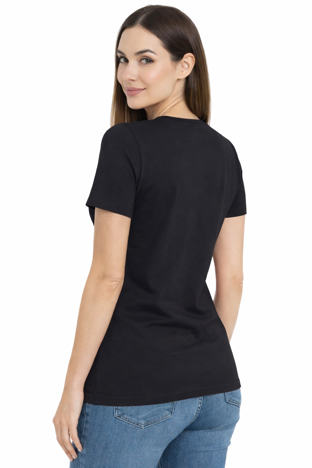 Naisten lyhythihainen v-aukkoinen t-paita, musta