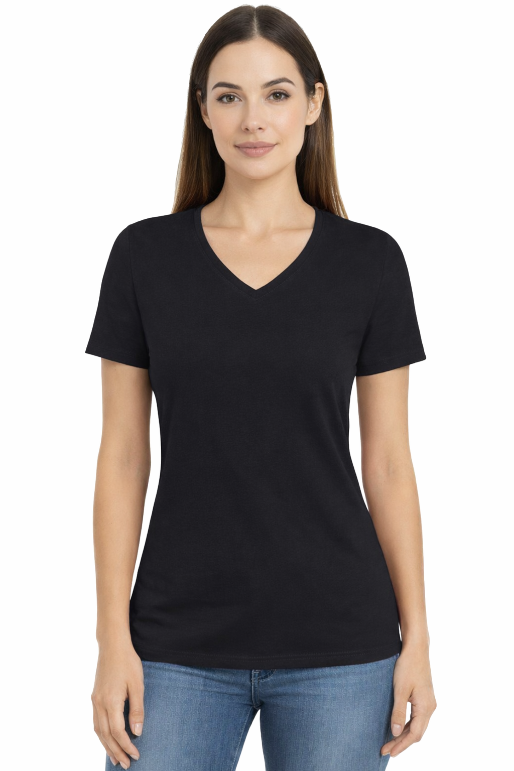 Lyhythihainen T-paita – puuvillainen naisten T-paita V-kaula-aukolla, väri musta