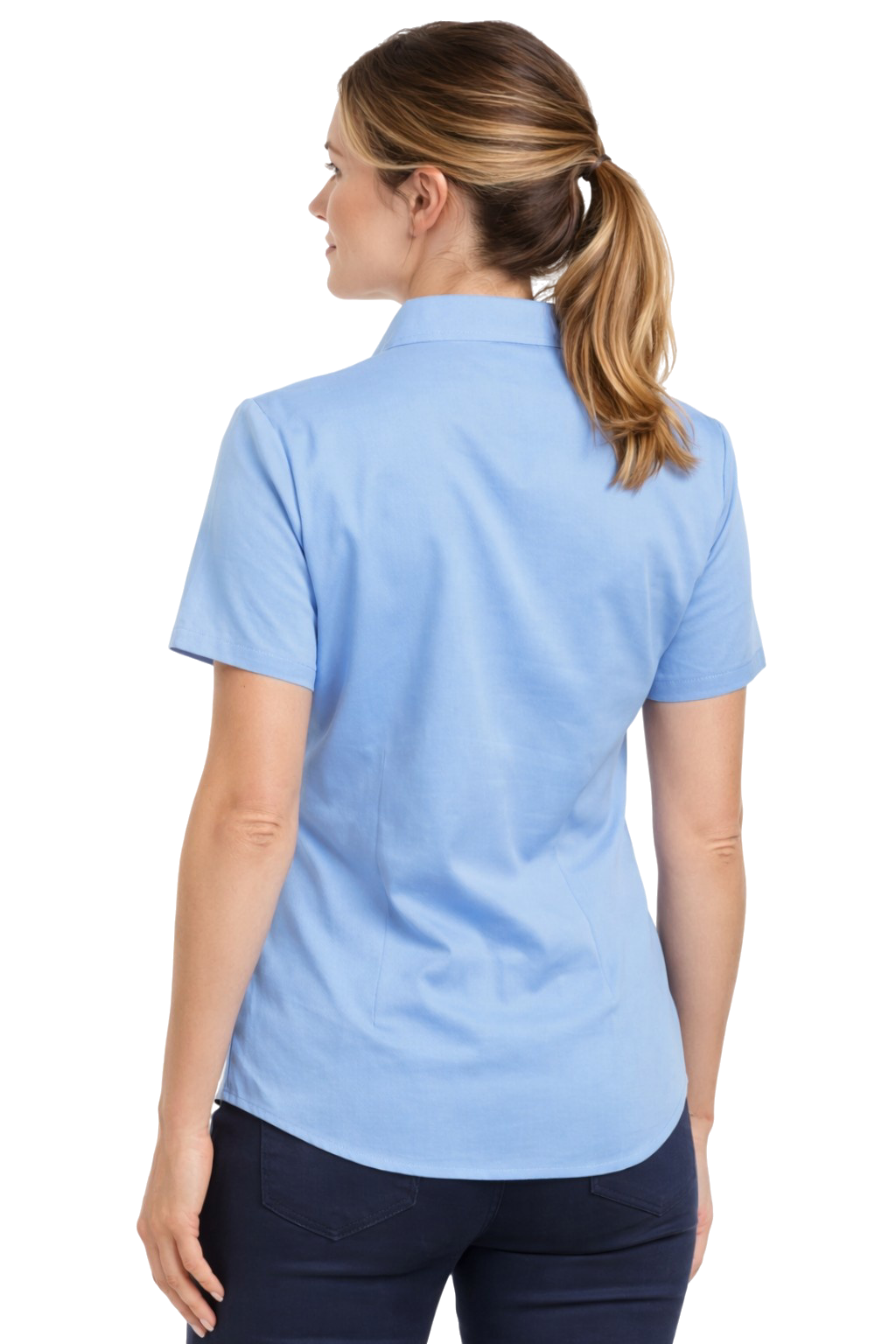Naisten sininen lyhythihainen paita – eleganssia ja mukavuutta työssä