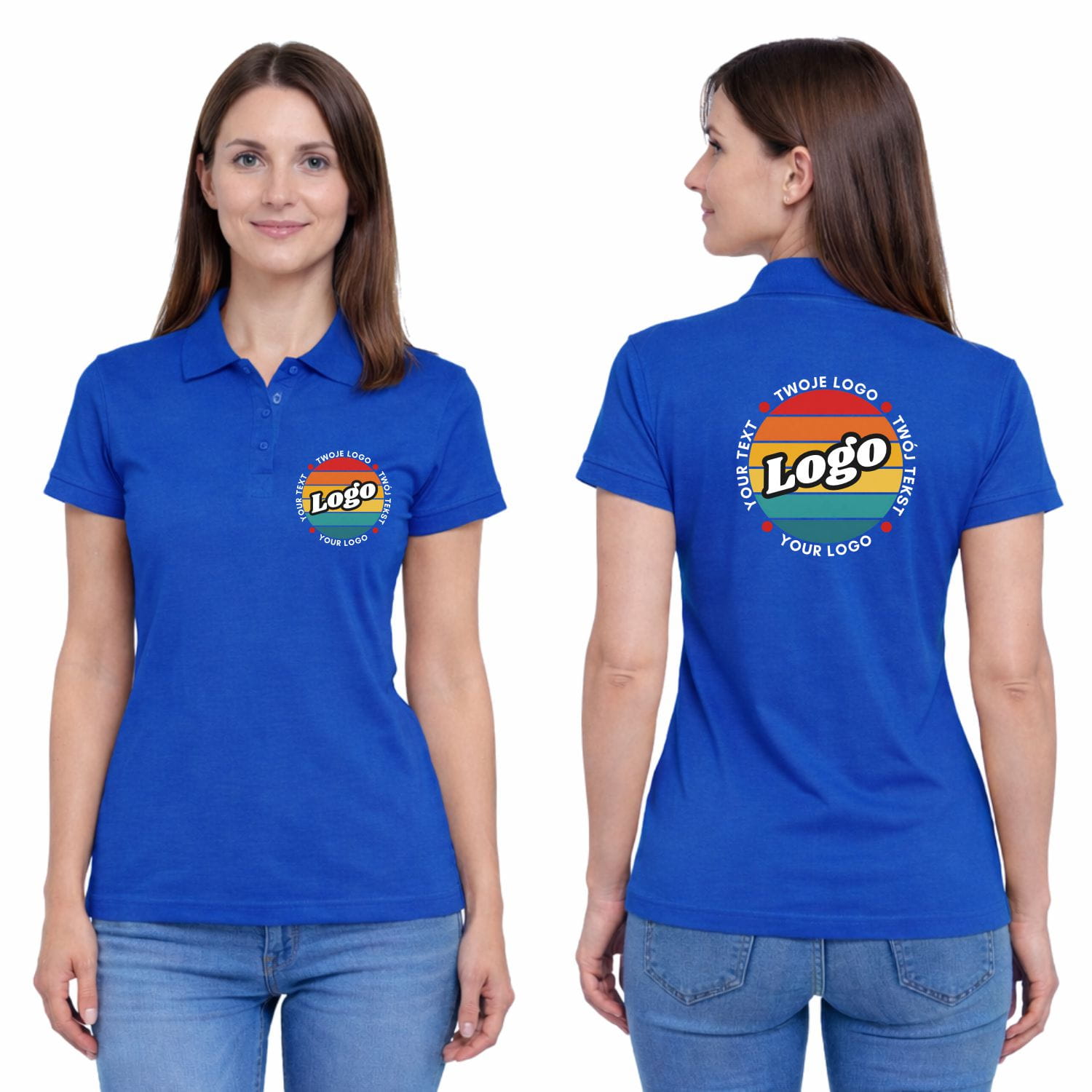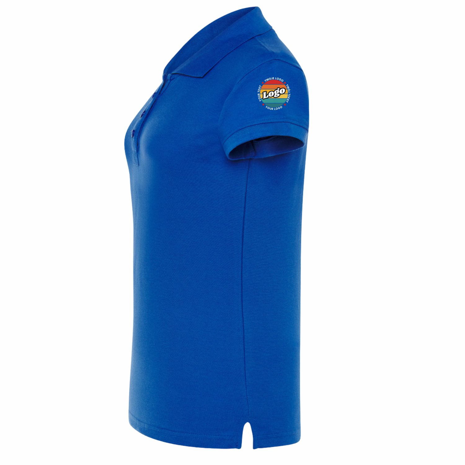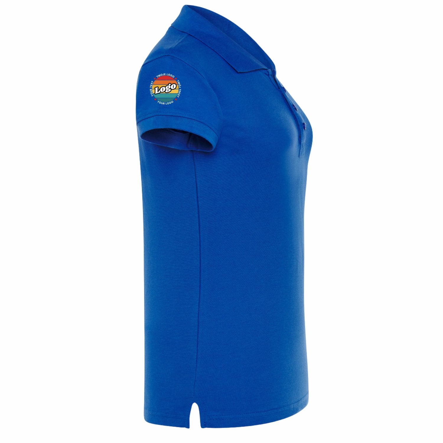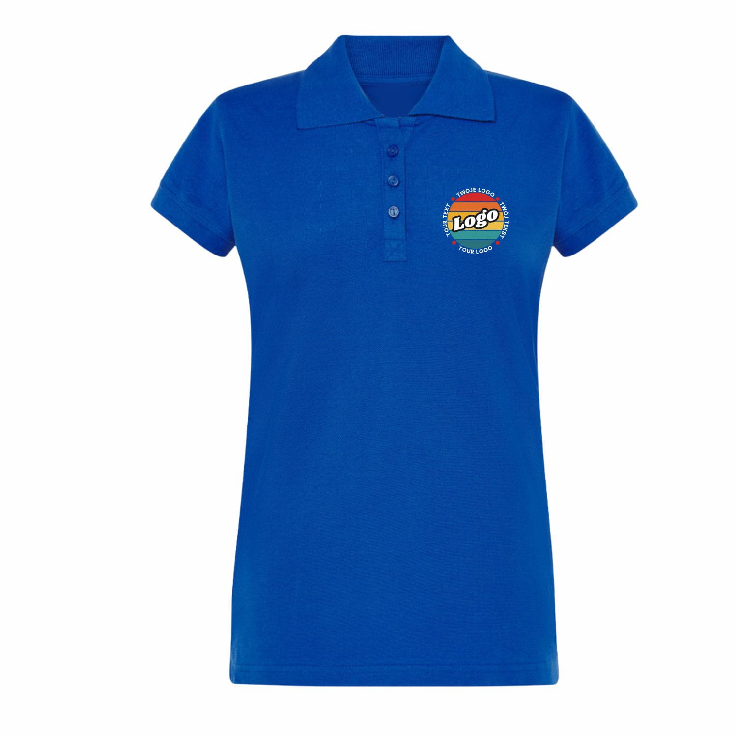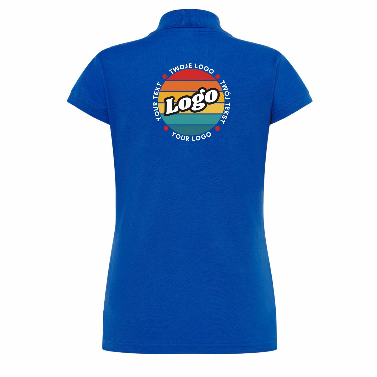 Naisten sininen polo-paita omalla painatuksellasi