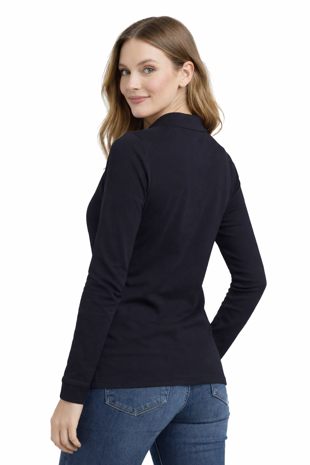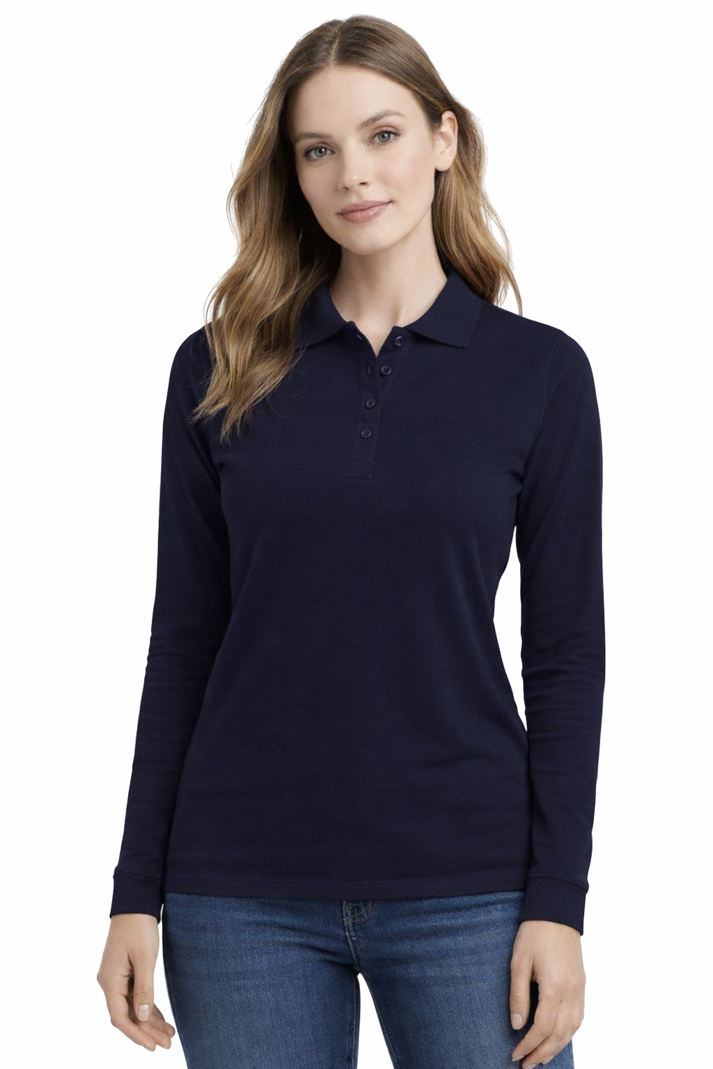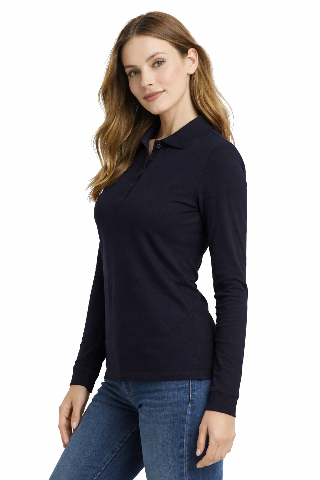 Naisten pitkähihainen tummansininen polopaita – käytännöllisyyttä työssä ja ammattimaista ulkonäköä