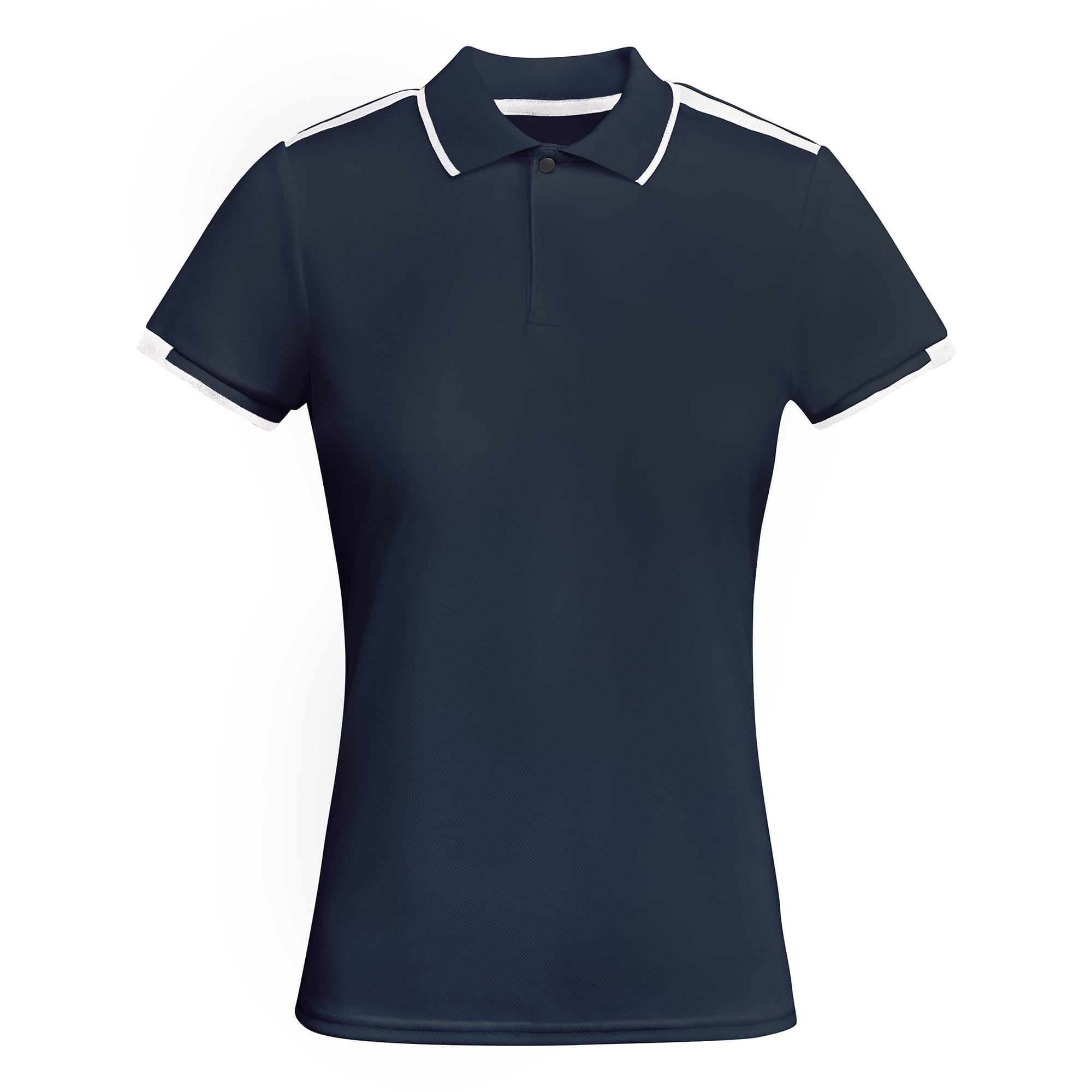 Naisten tyylikäs tummansininen polo-paita valkoisilla yksityiskohdilla