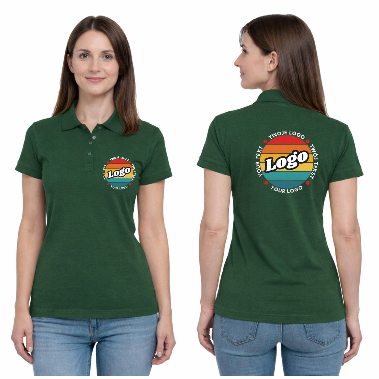 Naisten vihreä pullo-polo-paita omalla painatuksellasi