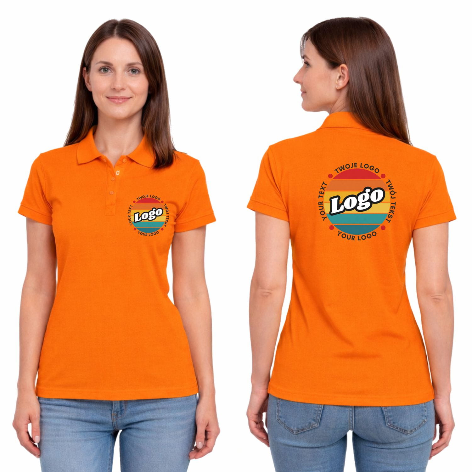 Oranssi naisten polo-paita omalla painatuksellasi