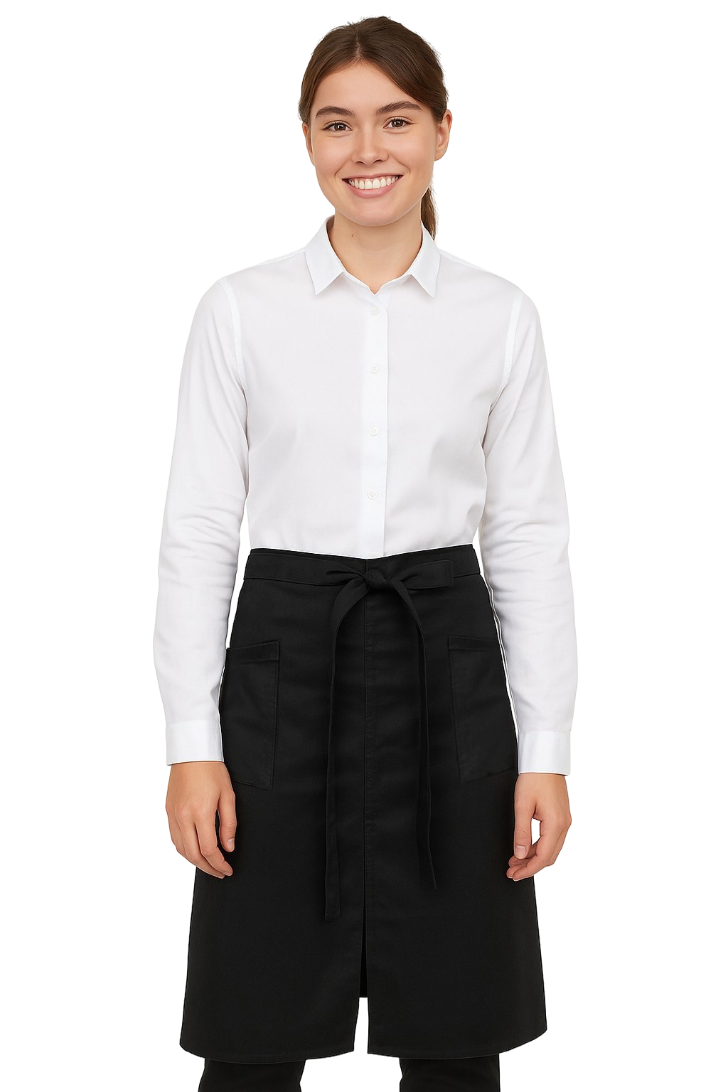 Pitkä tarjoilijaesiliinamme halkiolla on mukavuuden, kestävyyden ja modernin muotoilun yhdistelmä. Se on suunniteltu kokkien, tarjoilijoiden ja muiden ravintola-alalla toimivien henkilöiden työskentelyyn.