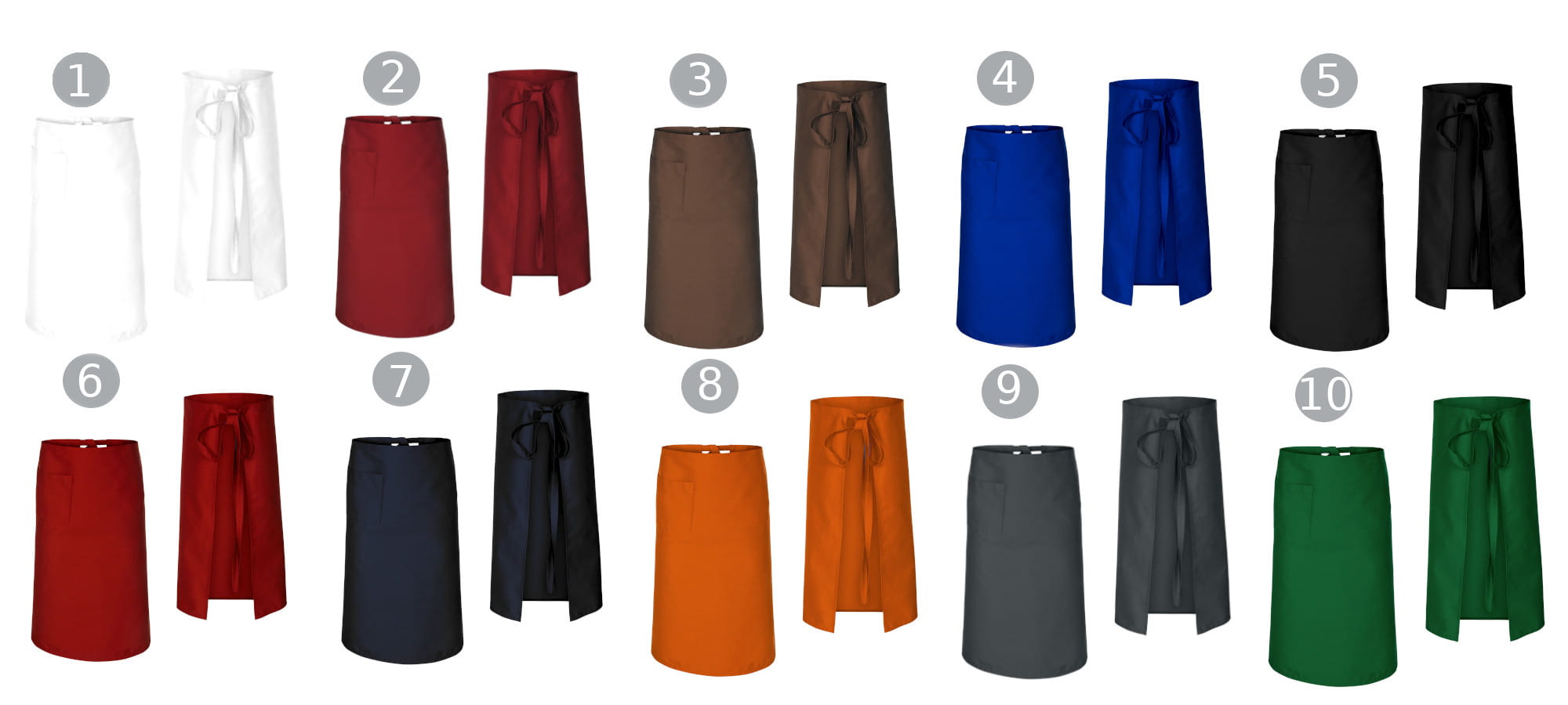 90 cm:n pituinen punainen tarjoilijan esiliina on tyylikäs ja toiminnallinen esiliina ravintola- ja hotellialalle. Se sopii erinomaisesti tarjoilijoiden, barettien, baristojen, pikoleiden ja kokkien työskentelyyn. Tämä on universaali työvaatekappale, joka yhdistää estetiikan ja korkean kestävyyden.
