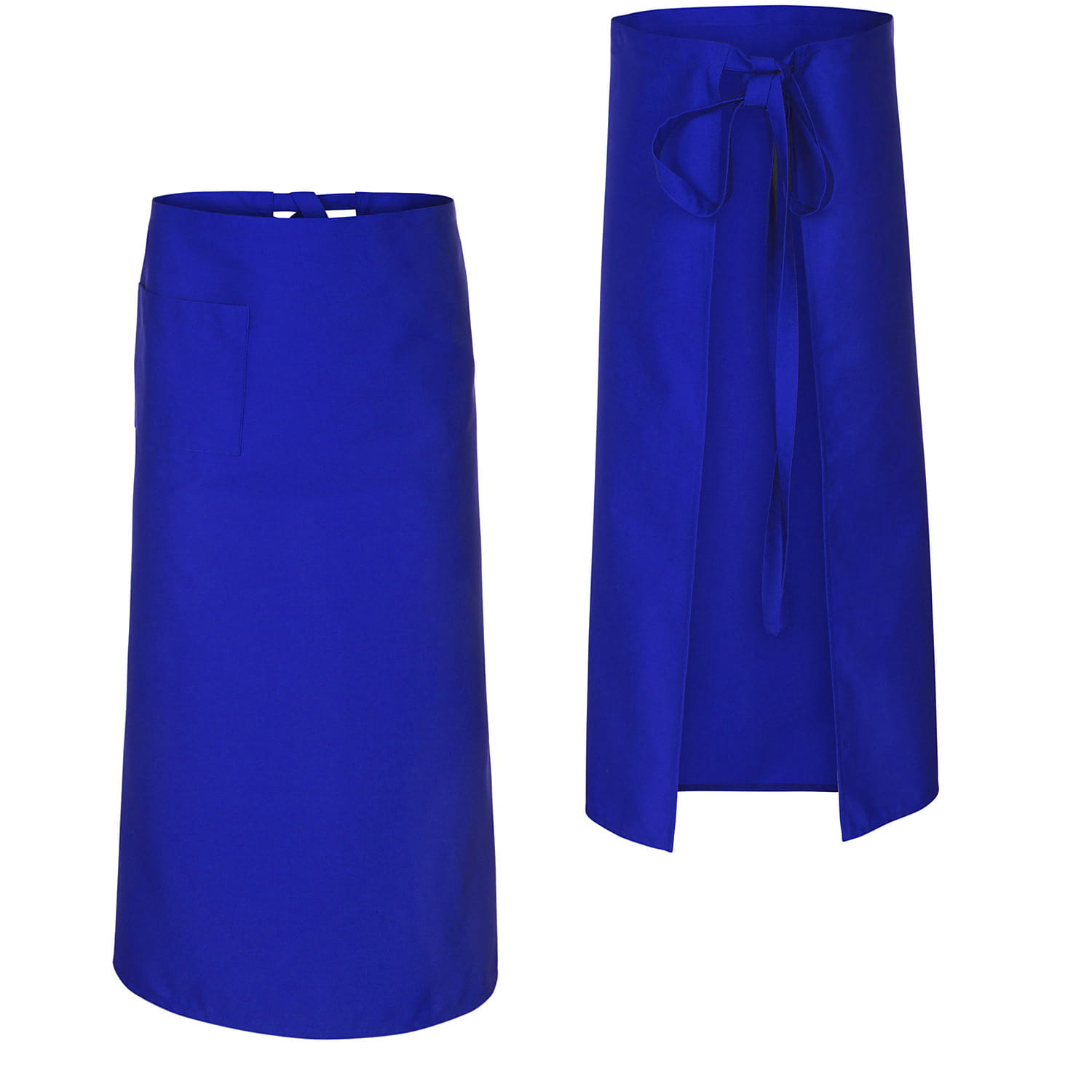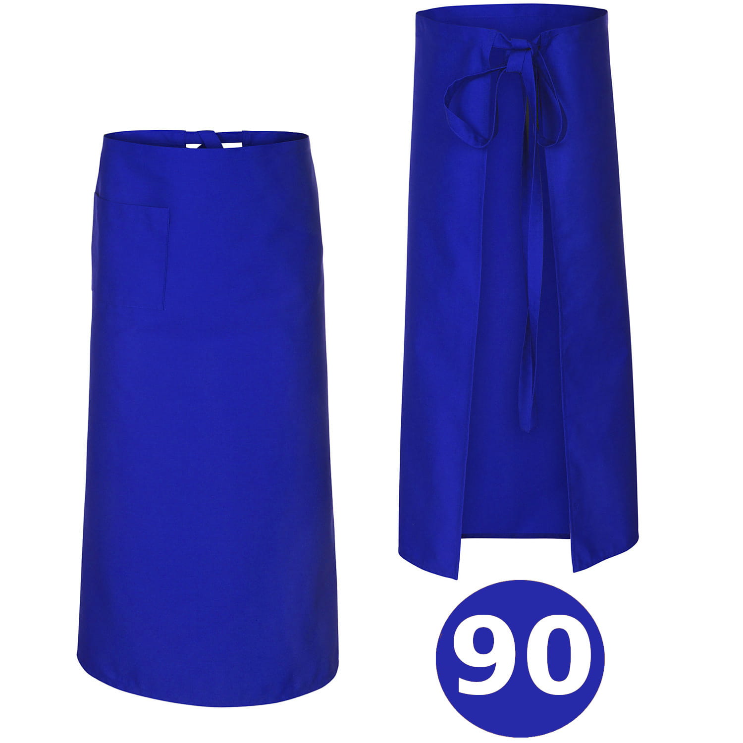Sininen 90 cm pitkä kokki-, tarjoilija- ja baarimikko-esiliina