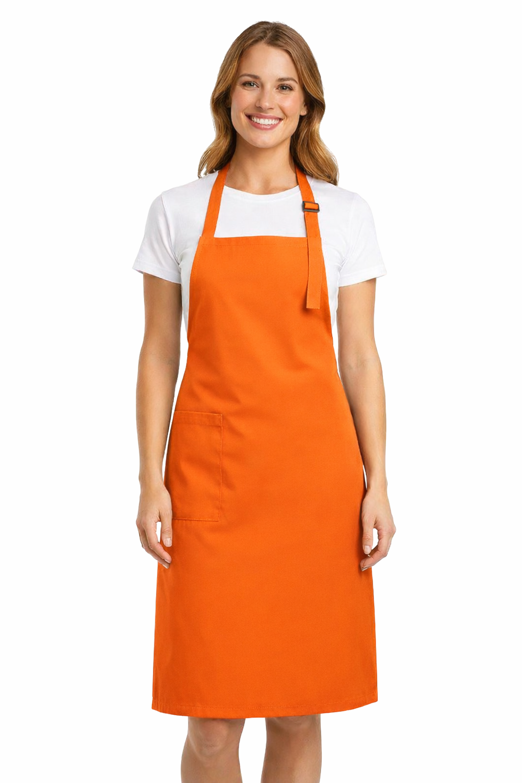 Tarjoilijan esiliina, 90cm pitkä kokkiesiliina, oranssi säädettävällä soljella
