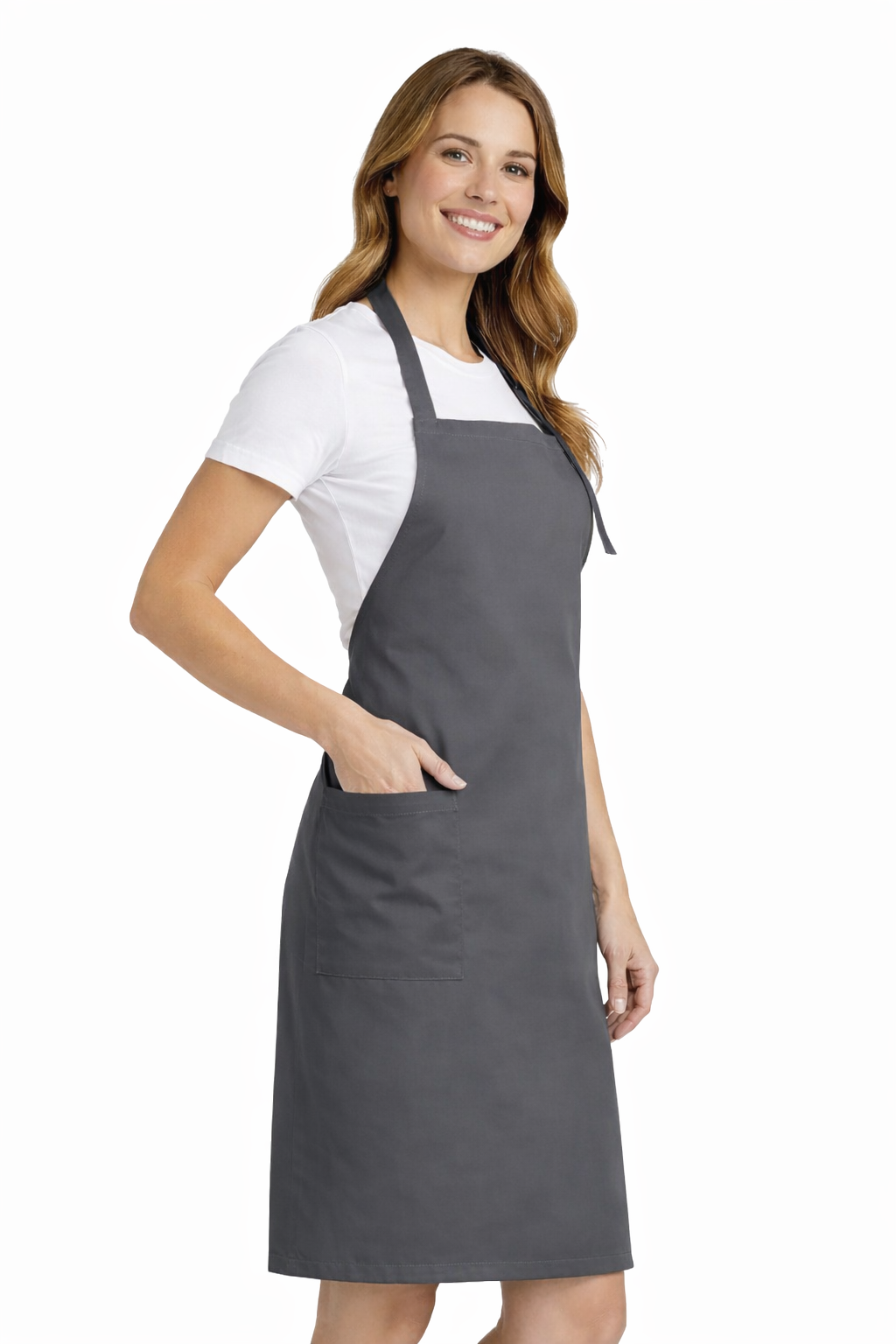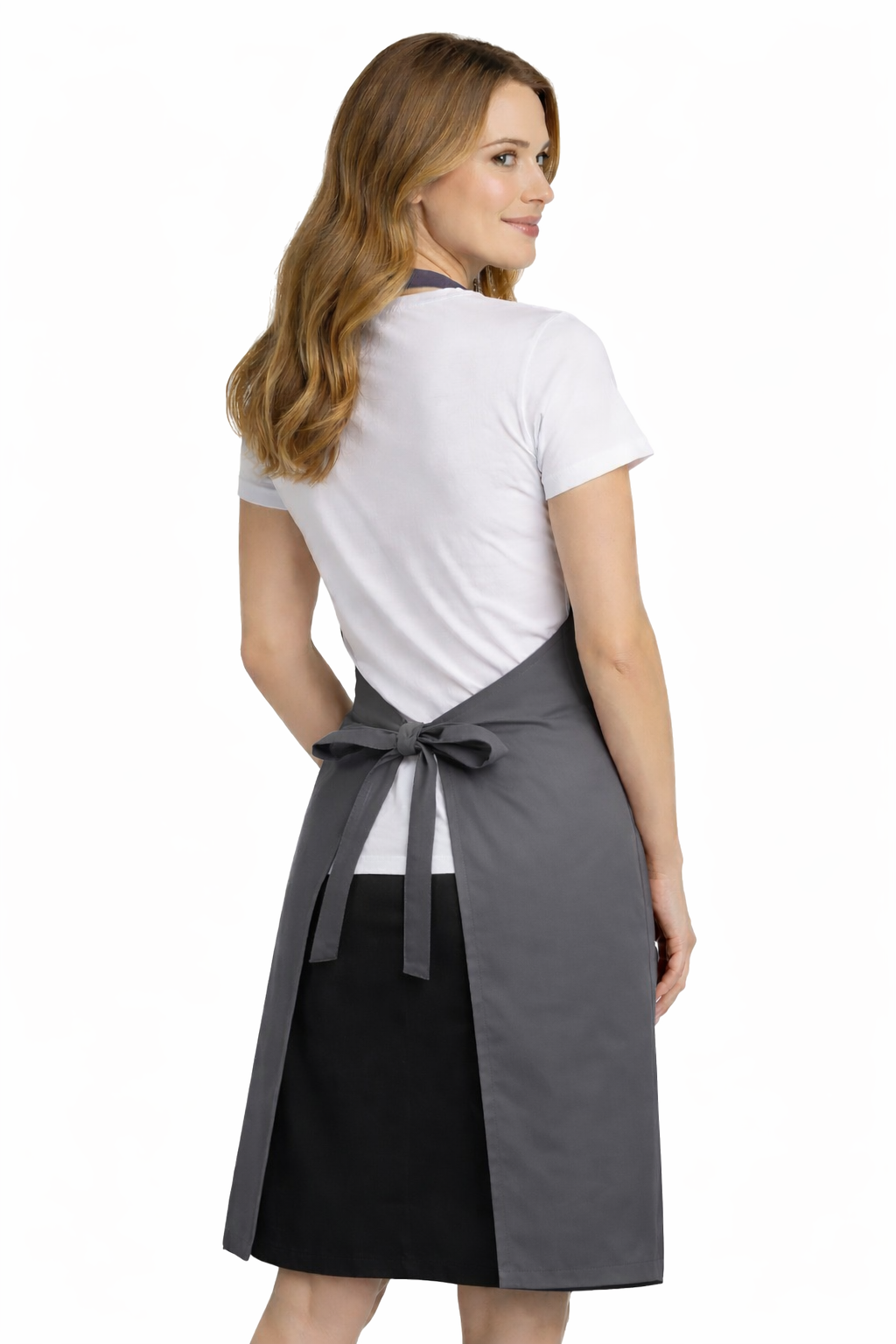 Ammattimaisen esiliinan tulee paitsi suojata myös näyttää hyvältä. Harmaa väri antaa tarjoilijan asulle tyylikkään ja universaalin luonteen, joka sopii erilaisiin gastronomisten interiöörien tyyleihin.