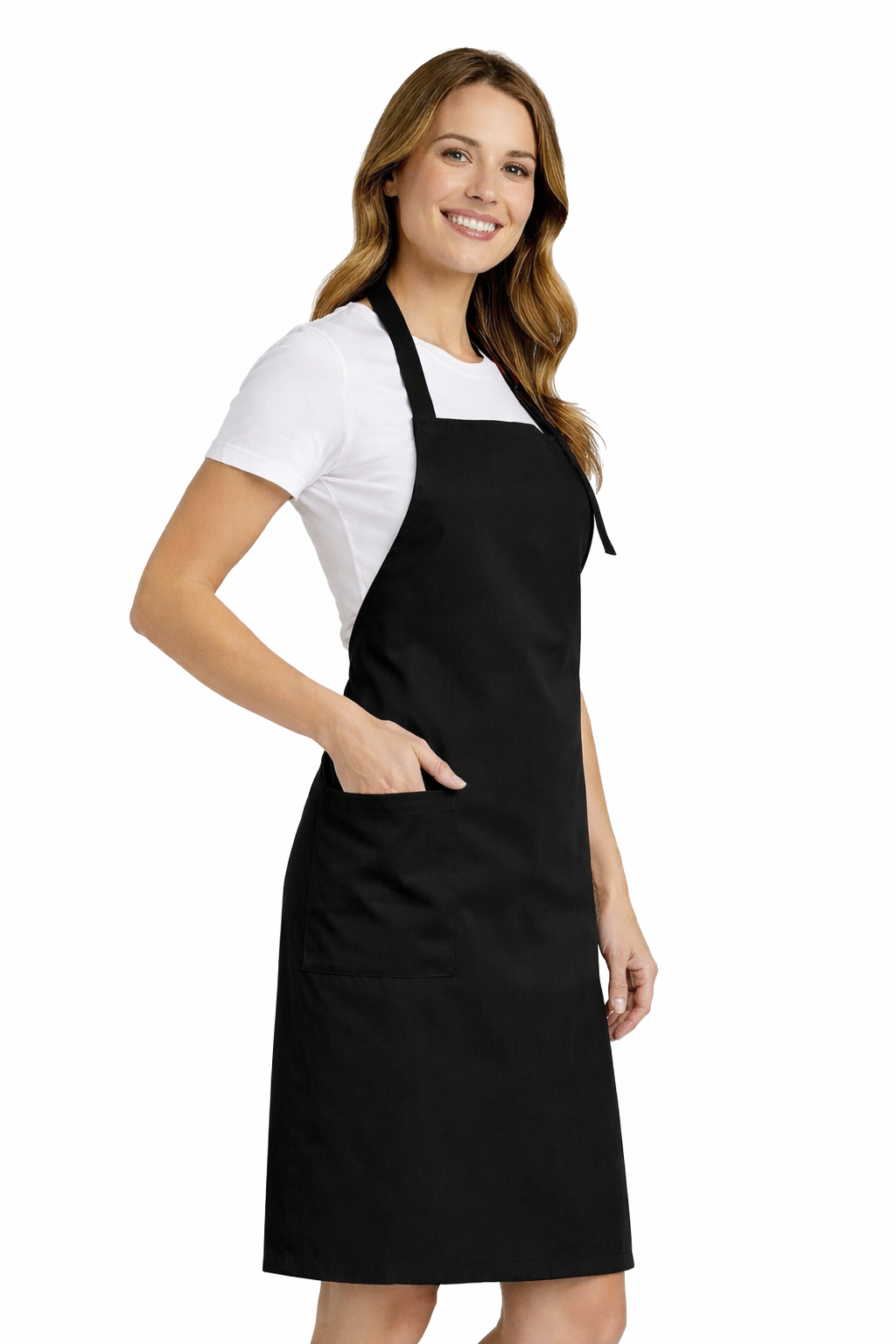 Esiliinan tulisi myös suojatoimintojen lisäksi näyttää ammattimaiselta. Klassinen musta väri korostaa gastronomisen vaatetuksen eleganssia ja universaalia luonnetta. Muovisella soljella varustettu säädettävä kaulusvyö mahdollistaa täydellisen sovituksen vartaloon.
