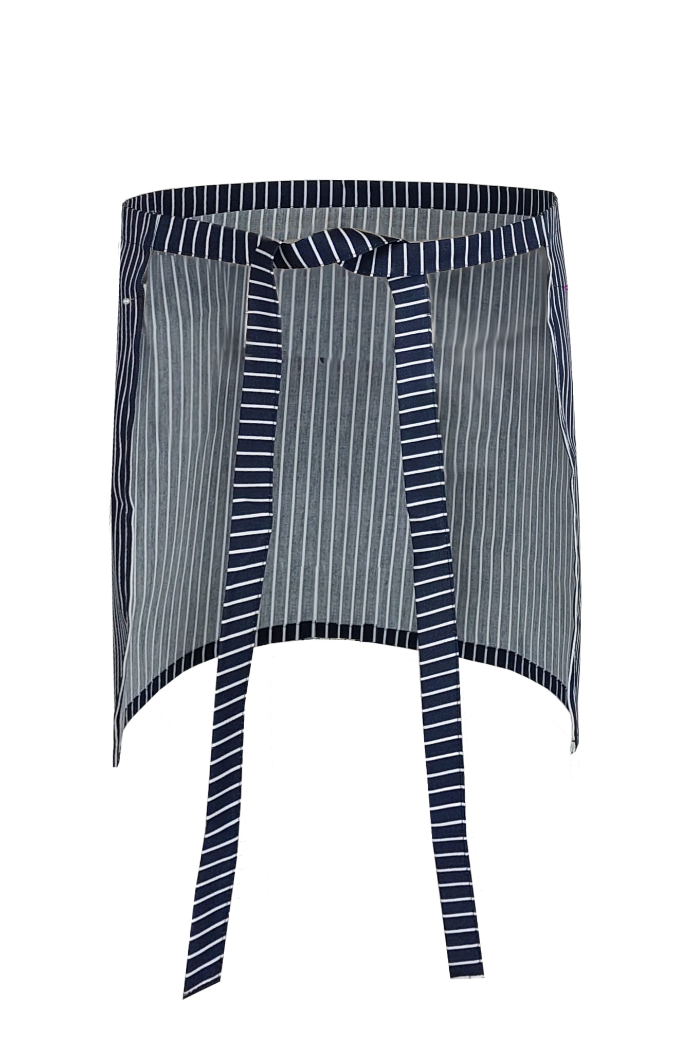 Tarjoilijan esiliina, kokki esiliina pituus 40cm, tummansininen valkoisilla raidoilla.