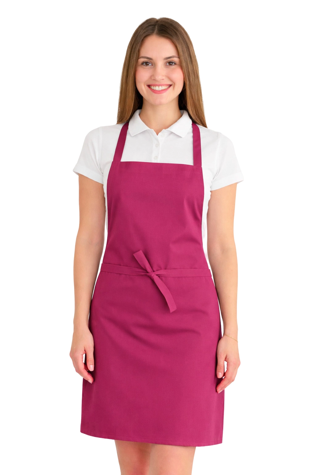Esiliina on valmistettu 50% puuvilla- ja 50% polyesteriseoksesta, jolla on 165–185 g/m² grammatura. Tämän ansiosta se on kevyt, hengittävä ja kestää toistuvan pesun. Sitä voidaan pestä korkeintaan 65°C: ssa, mikä mahdollistaa hygienian ja raikkauden ylläpitämisen. Vaaleanpunainen väri säilyttää voimakkuutensa useiden pesujenkin jälkeen, eikä materiaali kutistu eikä menetä muotoaan.
