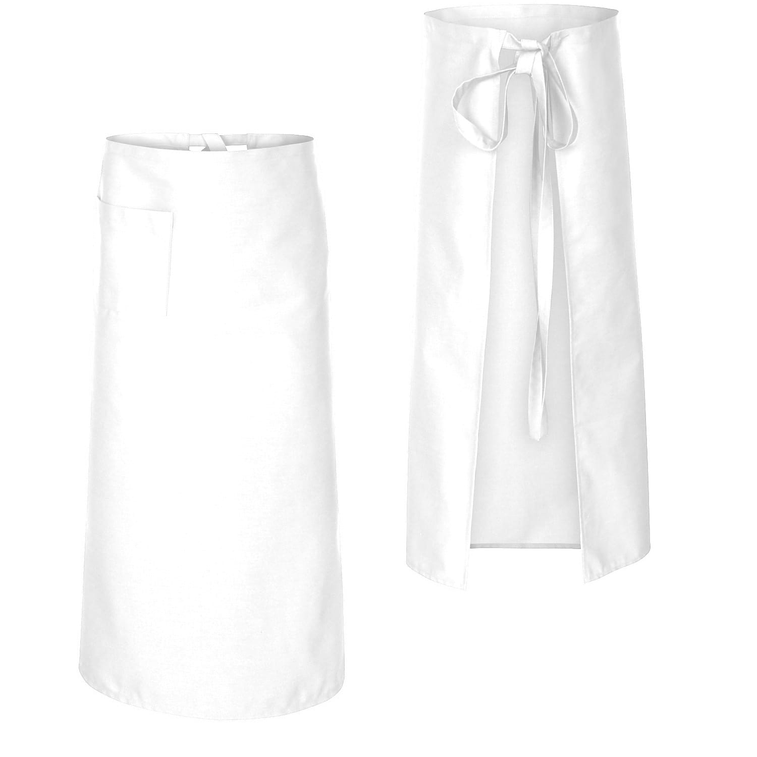 Valkoinen keittiö-, tarjoilija- ja baarityöntekijän esiliina, pituus 90 cm